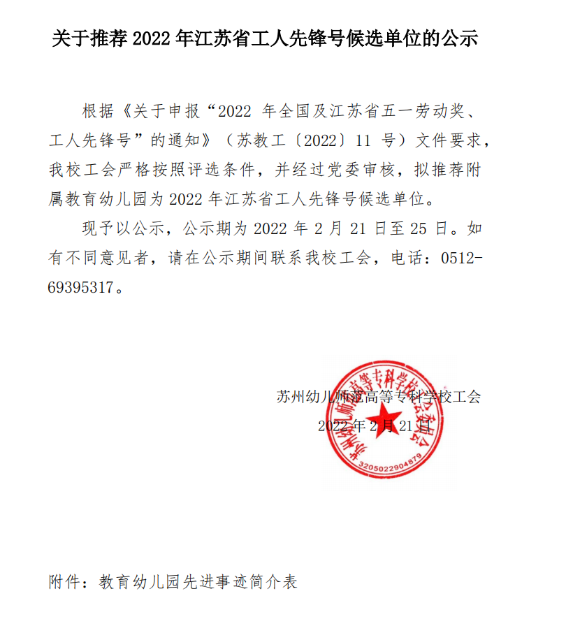 关于推荐2022年江苏省工人先锋号候选单位的公示