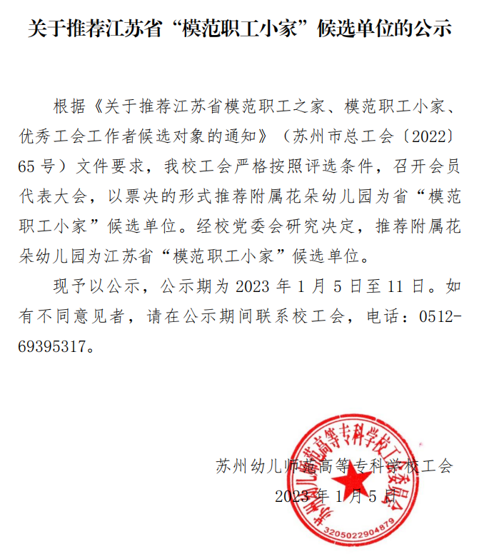 关于推荐江苏省“模范职工小家”候选单位的公示