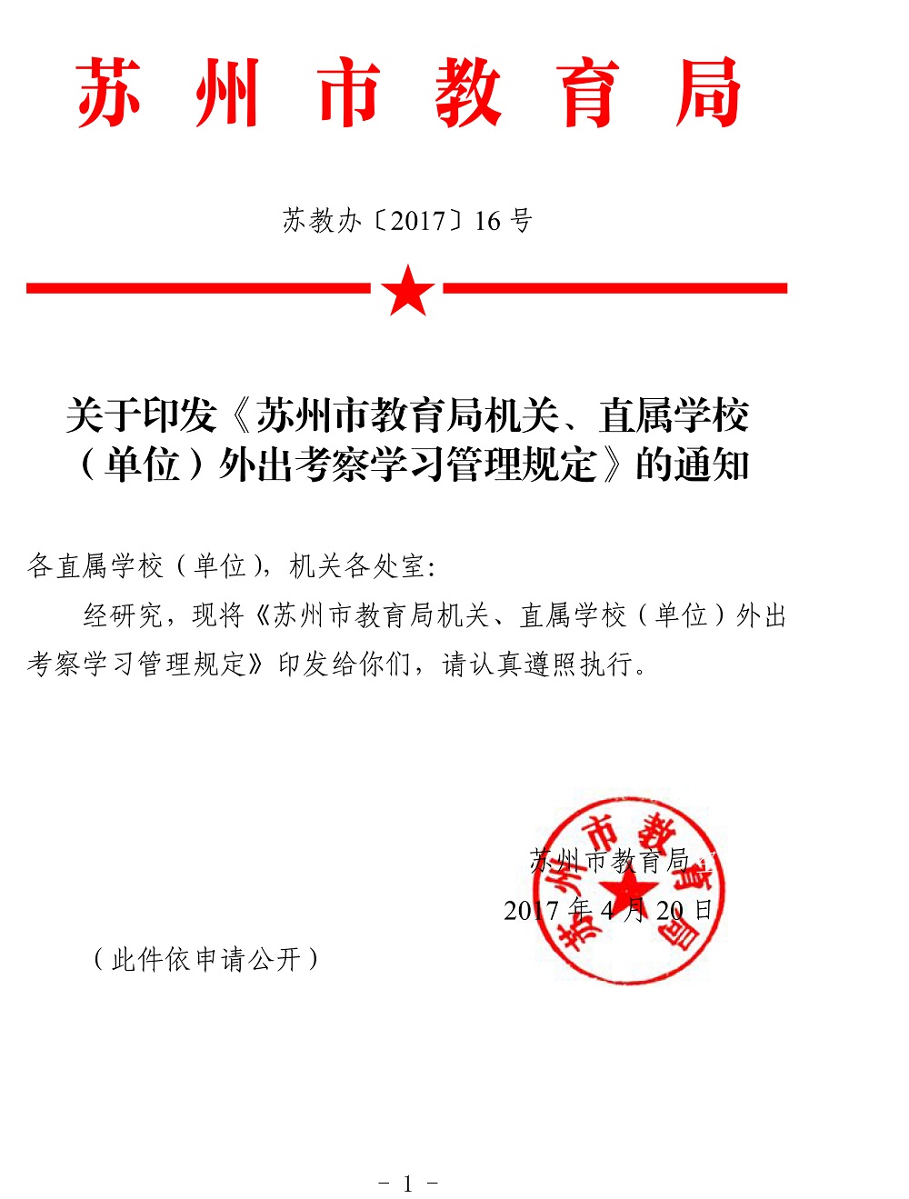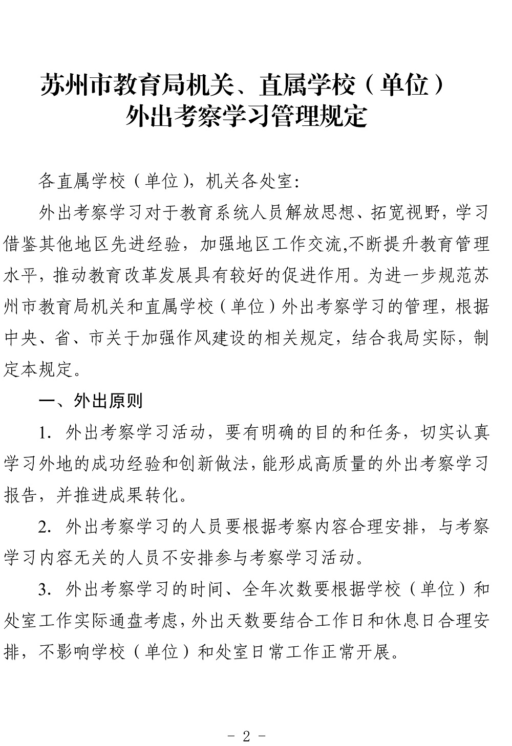 关于印发《苏州市教育局机关、直属学校 (单位)外出考察学习管理规定》的通知