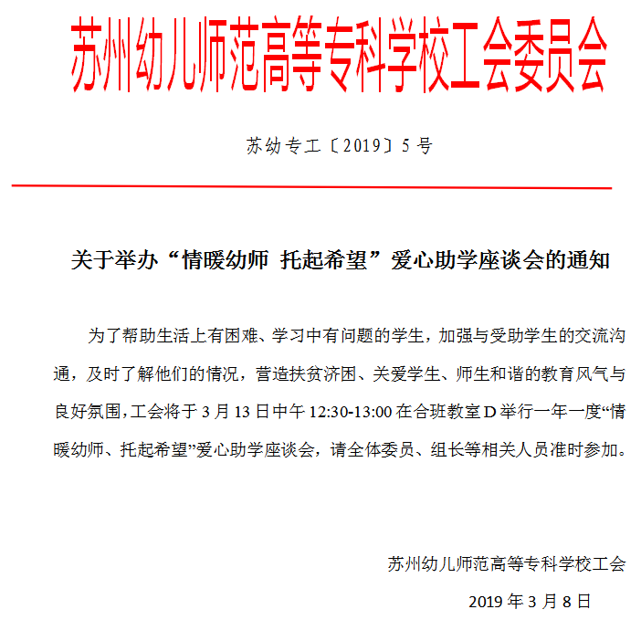 关于举办“情暖幼师 托起希望”爱心助学座谈会的通知