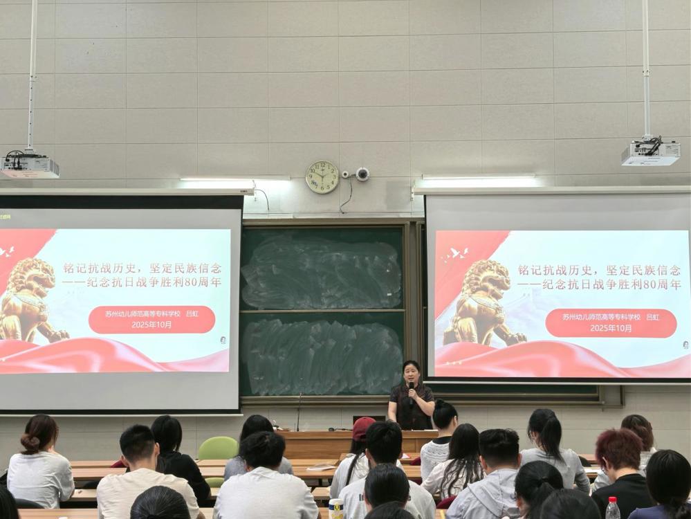 为铭记抗战历史、传承红色基因,引导师生从伟大抗战精神中汲取奋进力量,2025年10月15日上午,校党委委员、副校长吕虹在合班教室D,面向学前教育专业2401班、2402班学生讲授了一堂深刻而生动的专题思政课,引发热烈反响。