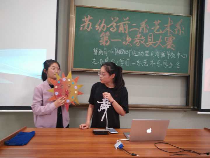 5月10号,我校学前二系艺术系于合班教室B举办了第一次教具设计大赛。到场的评委有蒋朝群老师、陈彧洁老师、沈聪老师、朱伟老师、朱丽萍老师和范从月老师,各班参赛同学及观众也准时到场。本次大赛由GYMBABY运动宝贝早教机构全程赞助支持。