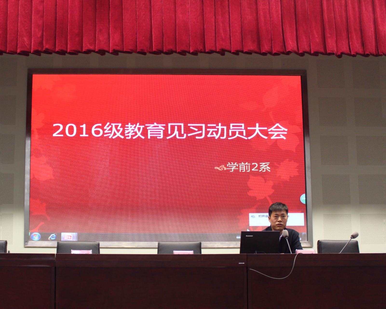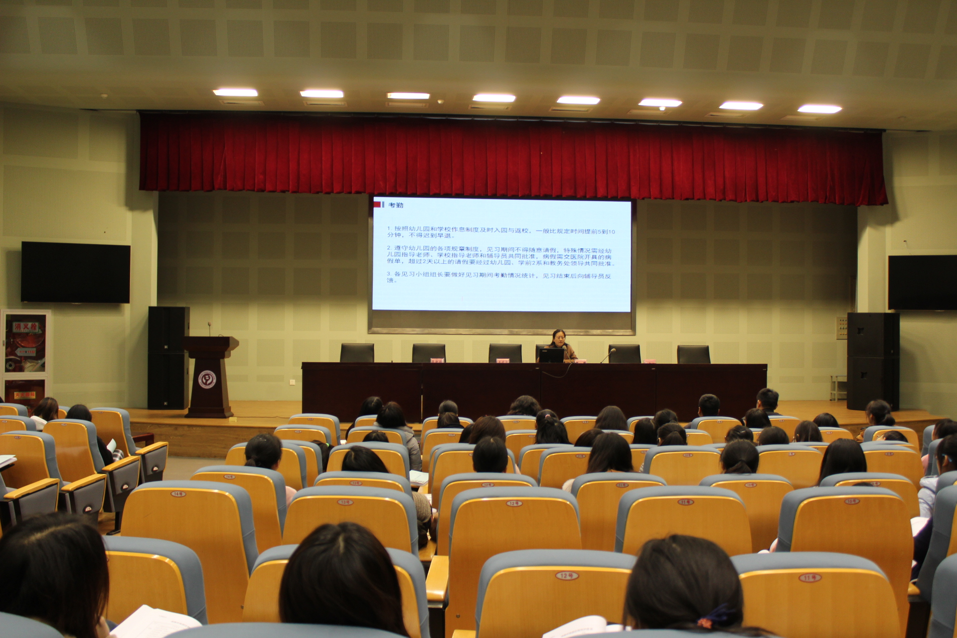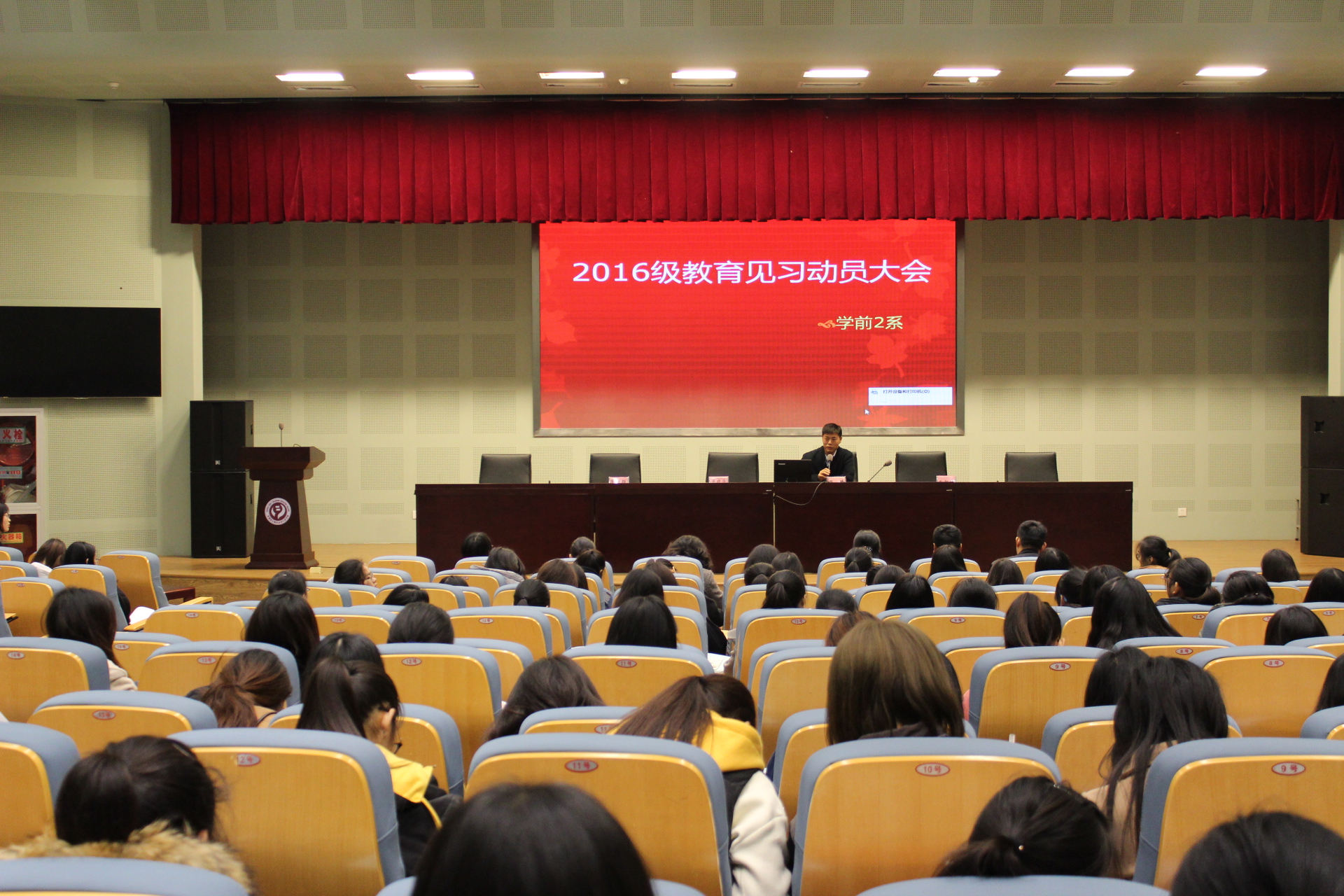 2017年11月29日下午,为了促进学前二系学生熟悉教育活动、提高实践能力和综合素质,我系于报告厅举办了16级学生教育见习动员大会。蠡口中心幼儿园园长吴晓华、学前二系主任张晗教授、主任助理蒋朝群副教授、教研室主任朱智红副教授、见习活动的带队教师以及二系16级学生参加会议。