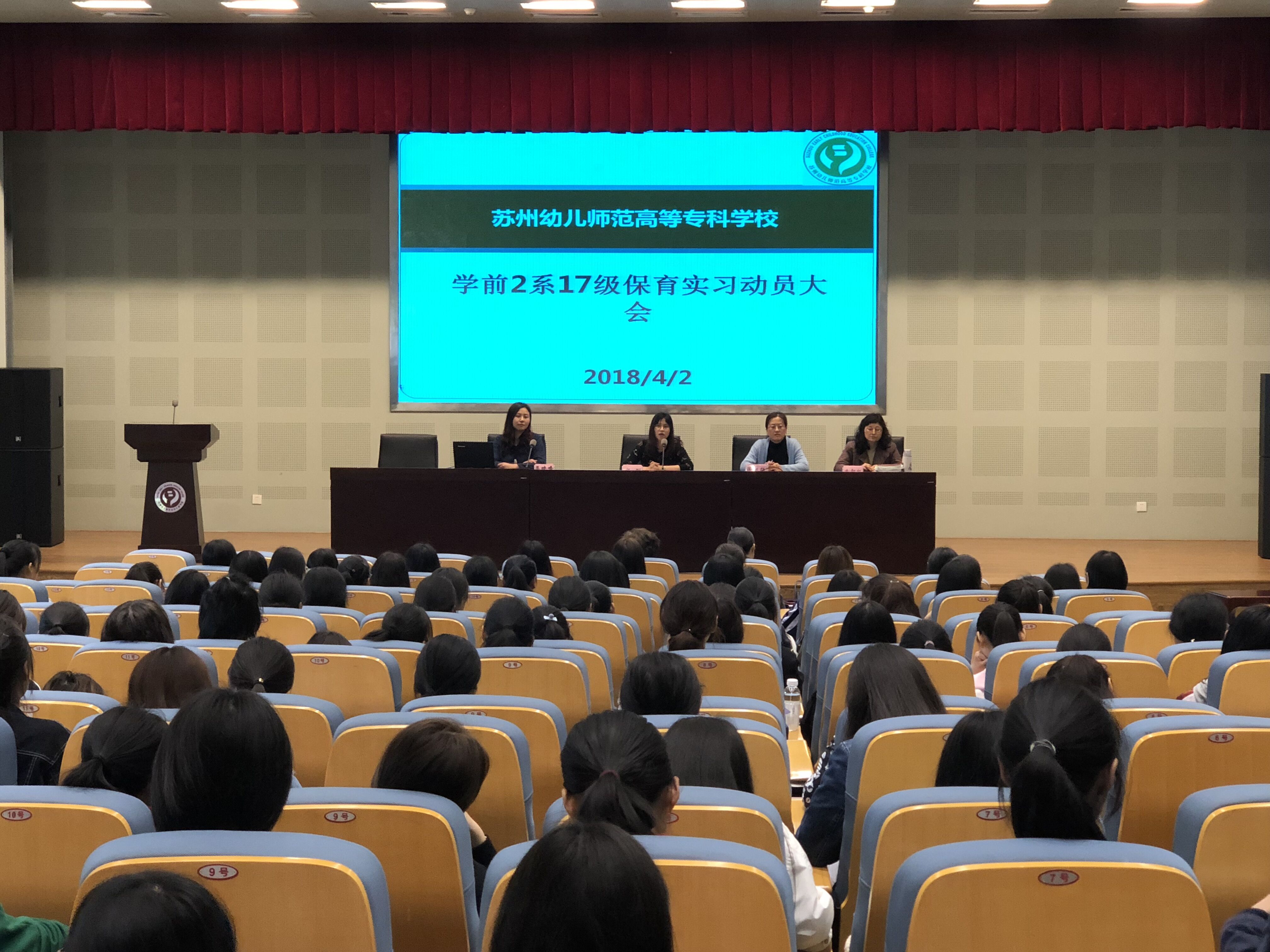 为了强化同学们对保育实习的认识,引导学生充分认识保育实习对于自身专业成长的意义与价值,明确辅导员与带队教师的职责,强化学生保育期间的安全意识,学前2系于 4月2日12:30在报告厅举行了2017级保育实习动员大会。2系2017级学前教育、早期教育全体同学、高新区狮山中心幼儿园吴晓峰园长、2系教学副主任杨俐、保育实习带队老师们参加了这次动员大会。