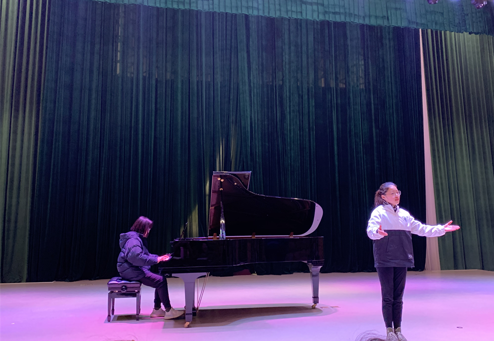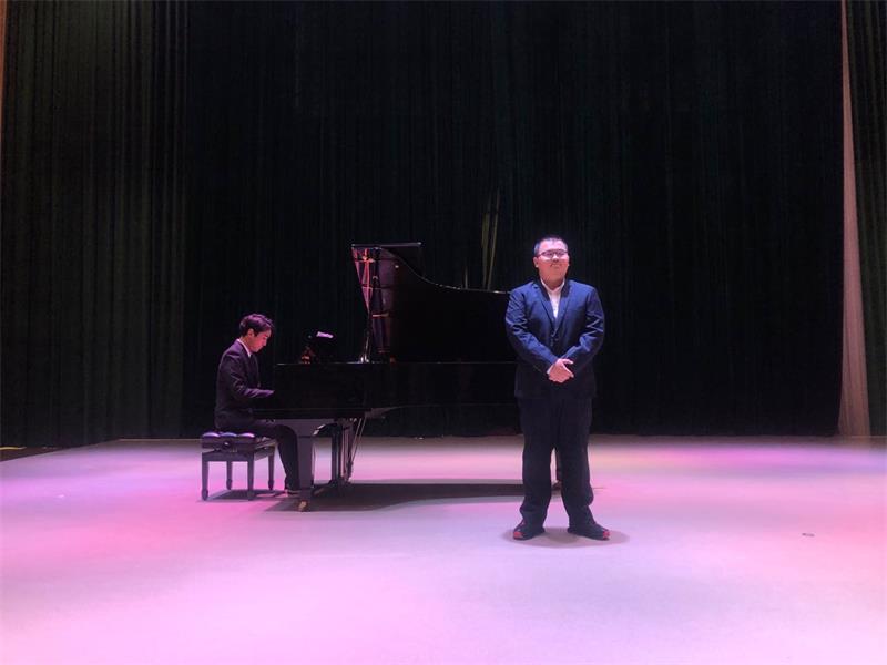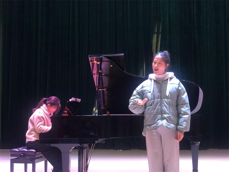 观摩活动分为两部分,第一部分以你弹我唱的形式在演奏厅展示《劳动最光荣》《渴望春天》两首曲目,同学们通过随机抽取观摩对象,任课老师现场评分的方式进行,期间共有5组60名同学进行了弹唱观摩,最后,钢琴老师沈佩瑶、声乐老师承轶妍为全体同学进行两首曲目的示范,作为第一部分观摩活动的压轴大戏。