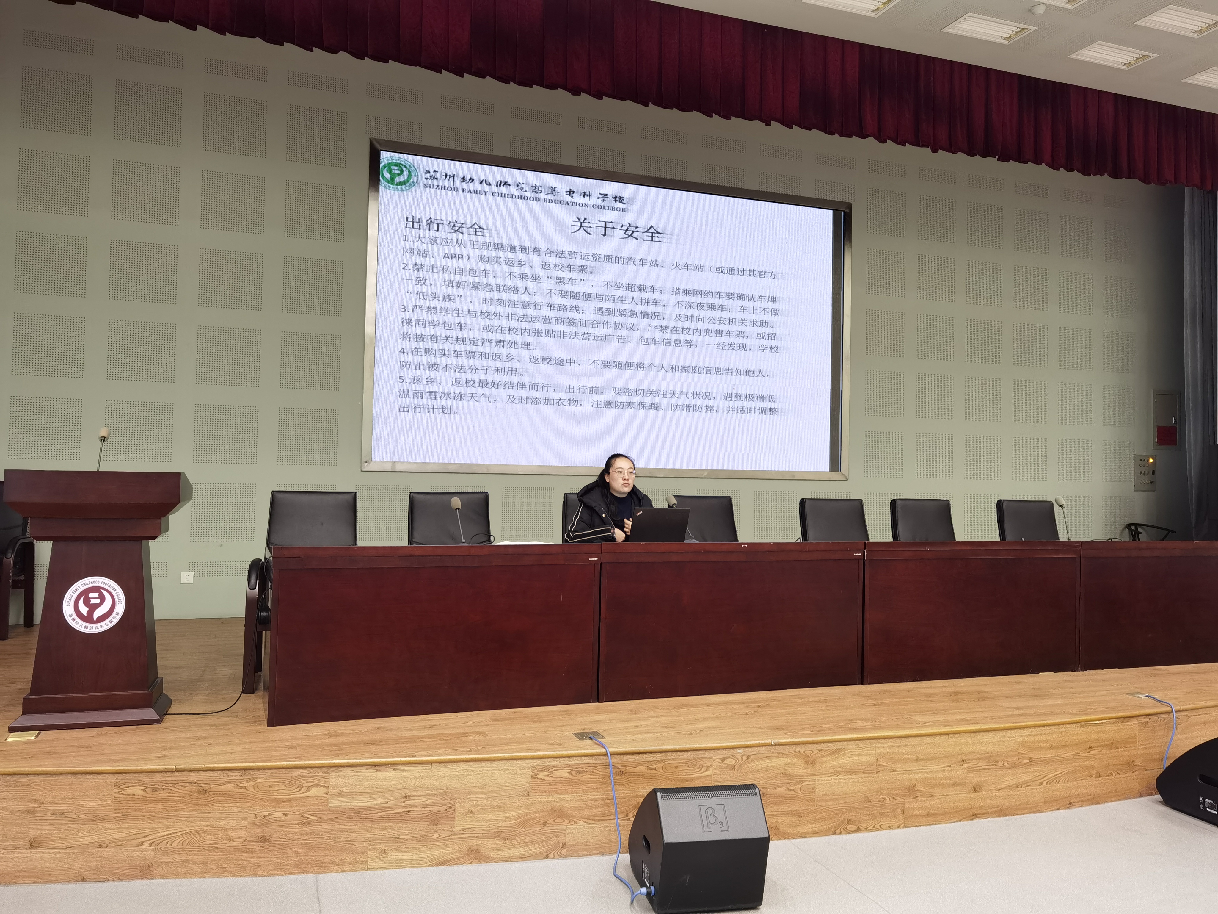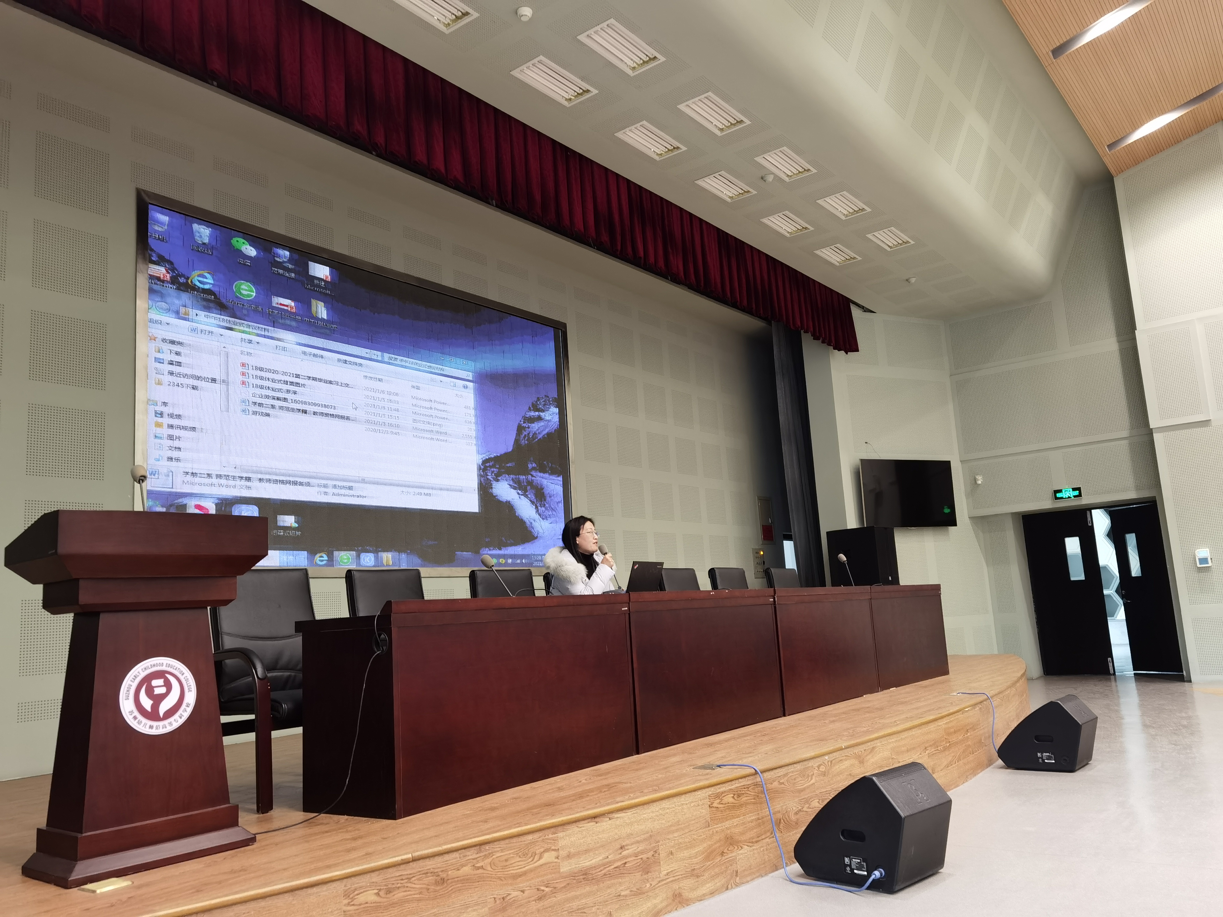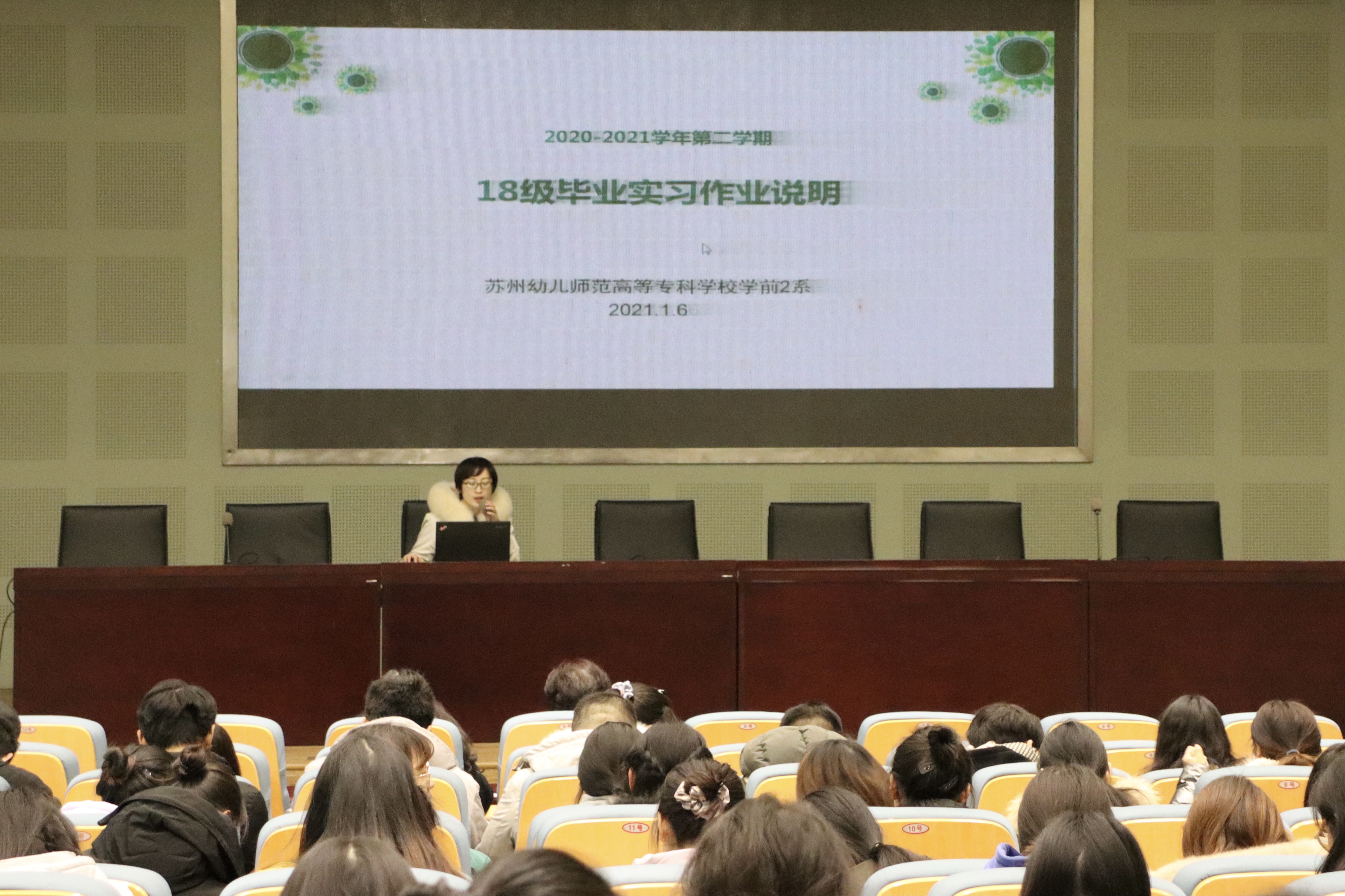 1月6日12:20,学前二系18级毕业实习动员会暨学生休业式在我校报告厅召开。学前二系副主任杨俐、学前二系副主任蒋朝群、学前教育教研室主任陈菲菲、学前二系18级辅导员罗淳、教学干事陶双骥老师、信息处郭欣老师及学前二系18级全体同学出席了本次会议。