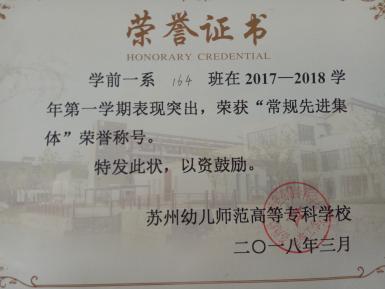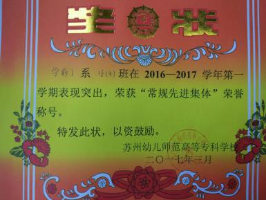 很荣幸这次能被评为常规先进班集体,这项荣誉的获得离不开每一位同学的努力。