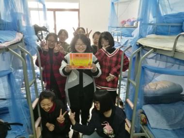在第一学期,我们班有五个宿舍都被评为“洁齐美”宿舍。