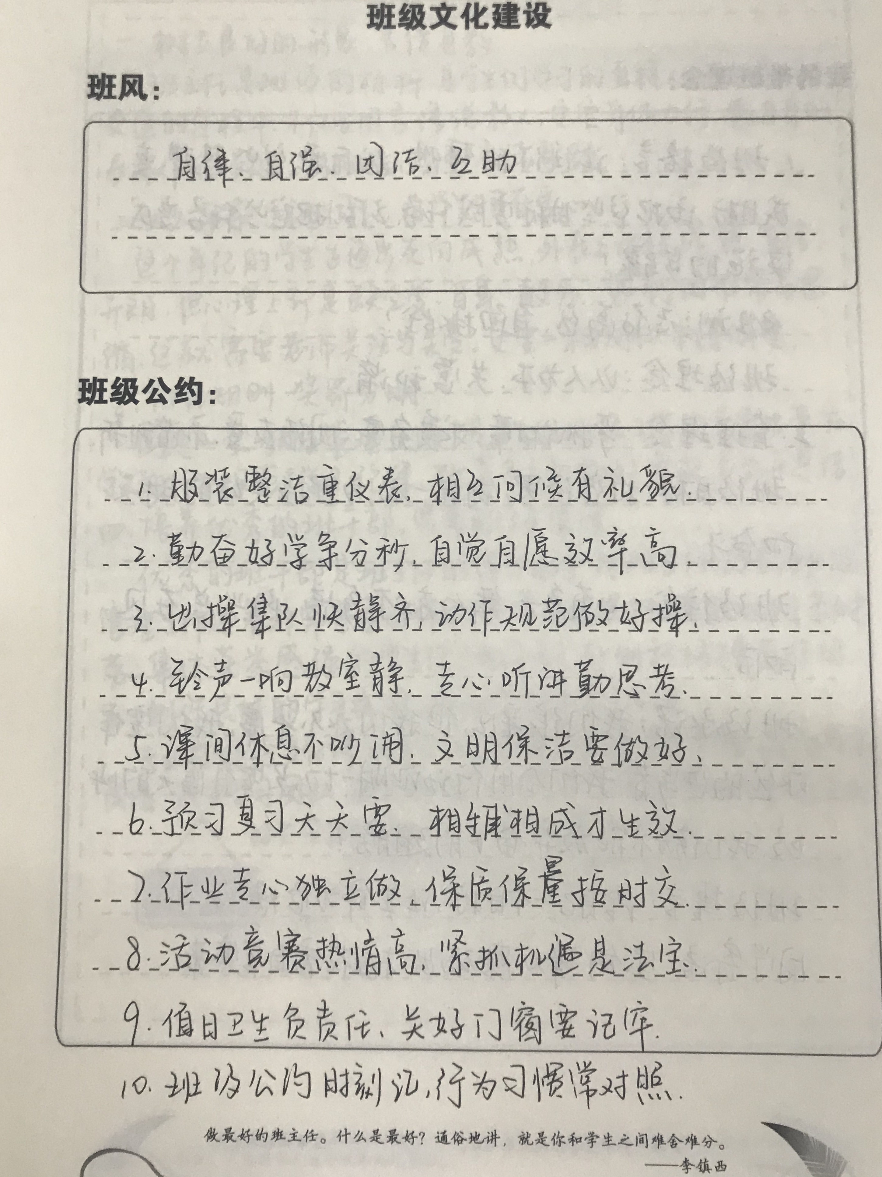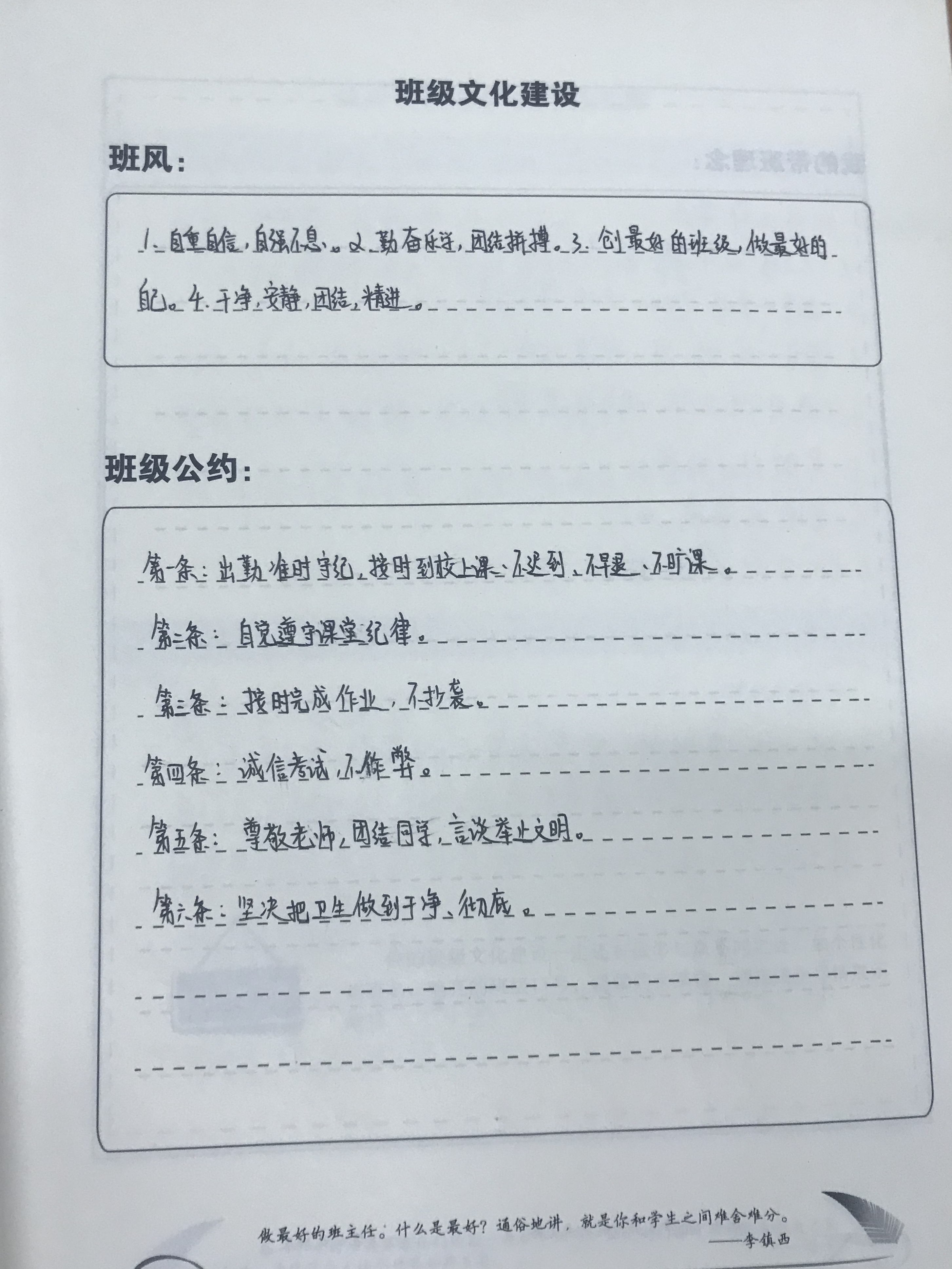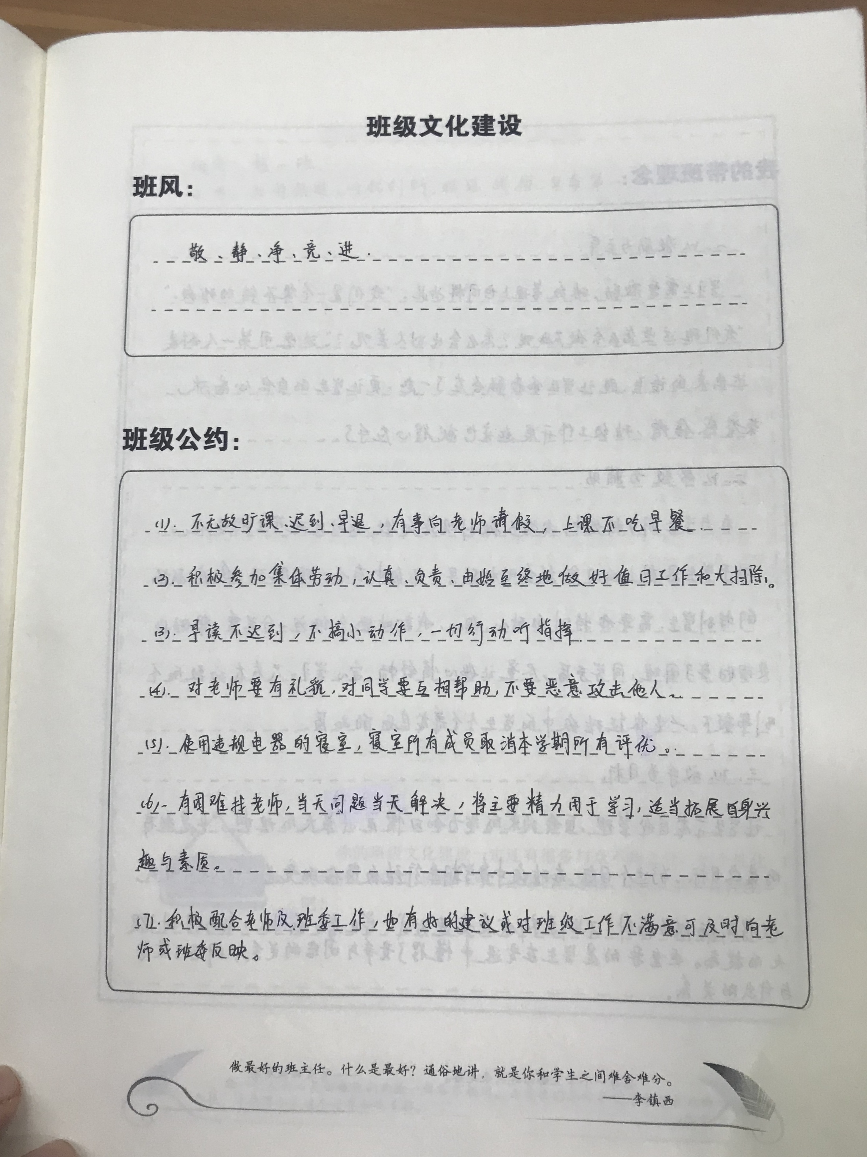 (图为兰燕老师班主任手册内容)