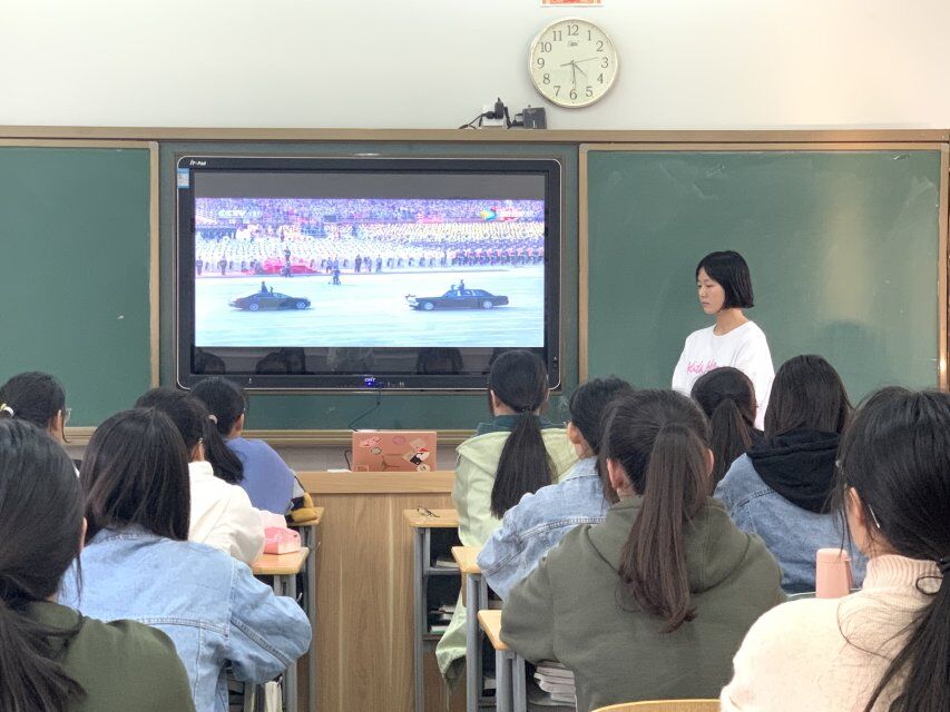 本次主题班会由班级305宿舍的陆致仪同学主持。本主题班会分为三大部分1)看阅兵与电影《我和我的祖国》中的爱国情怀2)我给祖国母亲过生日视频分享3)祖国和我们。主持人首先抛出一个问题:中华人民共和国建国70周年意味着什么呢?在大家都得知建国70年还意味着“中国超过了苏联,成为了存在时间最长的社会主义国家”时,脸上都不由流露出自豪的表情;接下来大家在一起回顾了国庆节的阅兵式以及电影《我的我的祖国》的视频片段,让大家又一次感受并讨论了阅兵中的各方人物以及电影中的关键人物那赤诚的爱国情怀;第二部分分享了国庆节期间班级同学拍的共同庆祝祖国母亲生日的视频,蔡新月带来了和家人其乐融融地共通举杯祝祖国生日快乐的视频,黄可柯别出心裁地让和妈妈合作了自己弹琴,妈妈唱歌的《我爱你,中国》;第三部分大家则从自己的幼师生以及未来的幼儿园老师的角度出发,发表了如何“不忘初心,牢记使命”,表达了现在努力学好自己专业,将来做一个优秀的幼儿教师的意愿;最后,班主任齐好丽老师做了总结性发言,齐老师语重心长地提出现在祖国的繁荣昌盛离不开父辈和祖辈们的坚持不懈的努力,而我们作为祖国的未来,应该明白“少年强则国强”的道理,并向大家提出了“化爱国情怀于具体行动,做好学生,为祖国的复兴努力奋斗”的倡议。