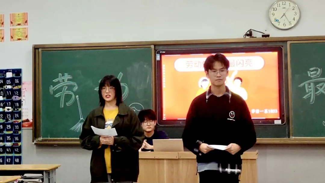 “人生在勤,不劳何获”,劳动是人类生存之本。1807班的同学们通过唱歌、诗朗诵、小品等活动帮助同学们更深地了解劳动精神。只有经历过艰辛付出、吃过大苦,视野才会更宽广,人生才会更笃定,才能有更扎实、更牢固的基础。也希望同学们能坚定信心、保持干劲,弘扬劳动精神,克服艰难险阻,在平凡的岗位上续写不平凡的故事,坚持辛勤劳动的美好风尚。