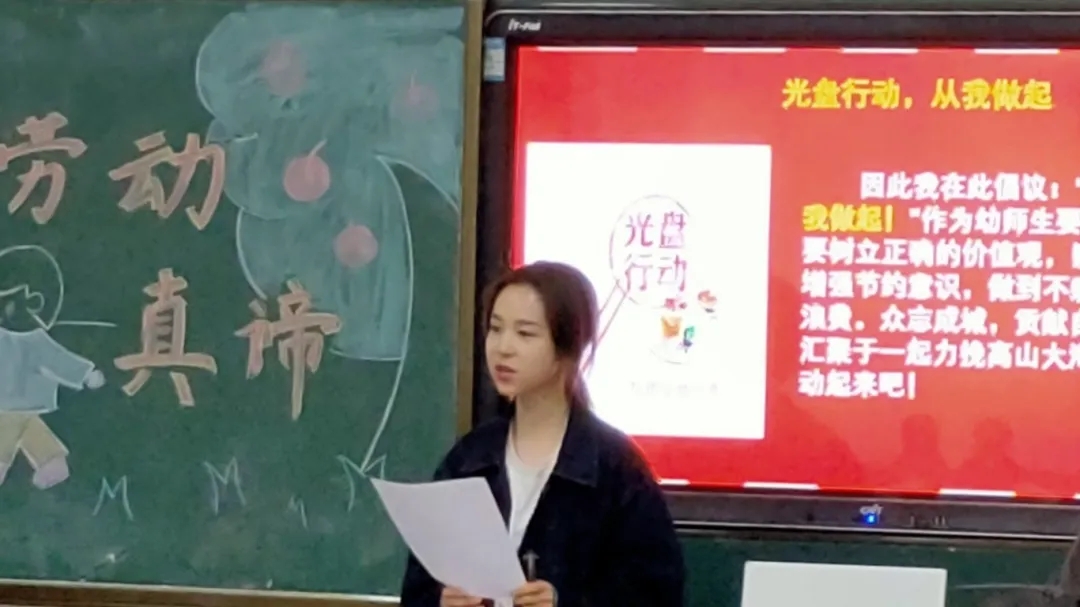 185班的主题是“劳动树新风”。树立洁净之风,保持良好的卫生习惯,不断提高自我劳动意识和能力;树立勤劳之风,做到“以勤养志,以俭养德”,做一名勤俭节约的幼师生;树立节约之风,争做光盘族,不做必剩客;树立探索之风,发扬工匠精神,做一名敬业、创新的幼师生。希望同学们都能将热爱劳动的精神内化于心,外化于行。