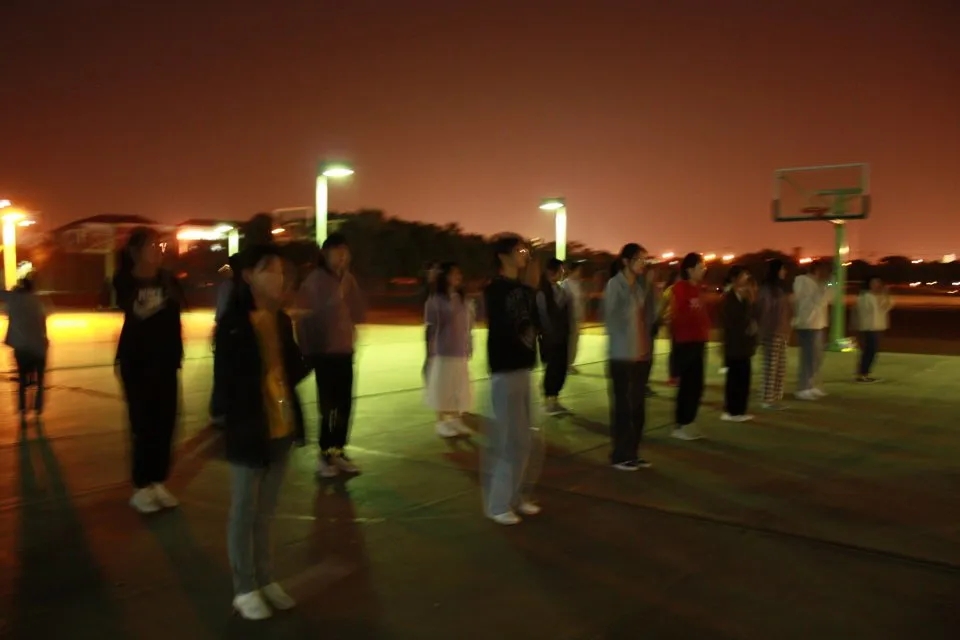 操点——我班操点一般都会在每周日的第二节晚自修申请,因最近需练习早操,也就由几位193班的漂亮学姐带领我们一起练习。“大公鸡,喔喔叫……我们的世界真美好。”这是在跳第一支操呢,It's so cute!紧接着又响起了《幸福舞起来》,最后是《踩踩踩》。乐曲在篮球场上回响,每个人都在很努力地记动作,果不其然的,努力总是会有回报的。现在,我班每个人都能完整地做完早操,感谢学姐们的悉心指导,相信我们会越练越好。