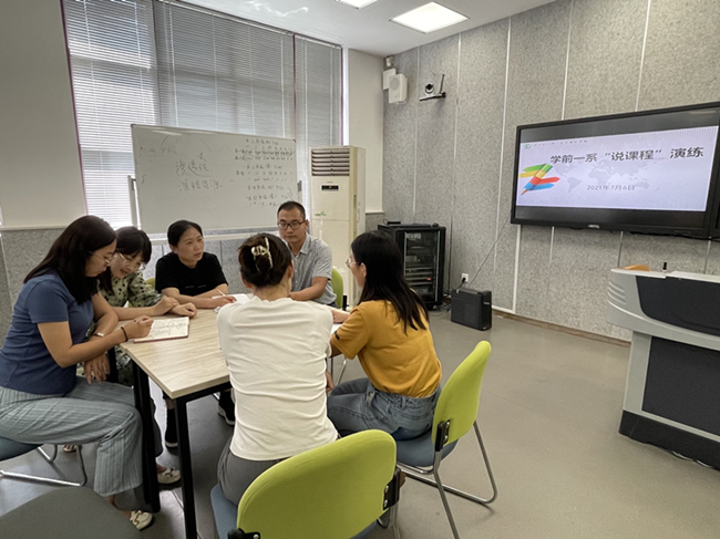 2021年7月6日上午学前一系学前教研室开展第一轮“说课程”下半场演练活动。按照我校《迎评说课程评价标准》覆盖所有专业、所有课程和所有教师的要求,除第一轮上半场说课展示的4位教师外,学前一系学前教研室11位教师参与本次“说课程”演练活动,4位已经展示的教师参与观摩和研讨。