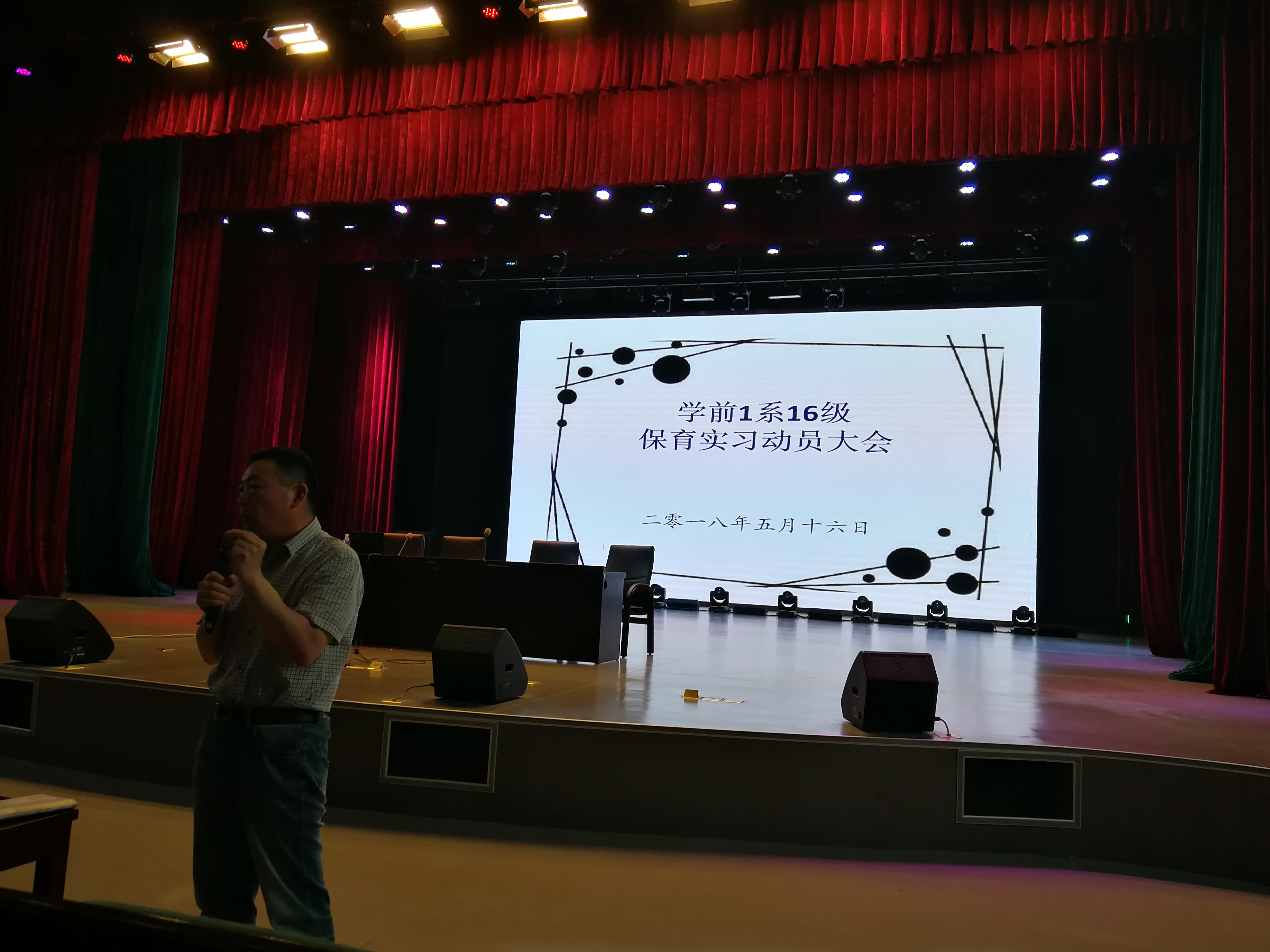 2018年5月16日下午,我系在演出厅举行了2016级保育实习动员大会。会议由薛祖华老师主持,系主任滕飞教授、专业课教师、16级各班班主任以及16级全体学生参加了动员会。