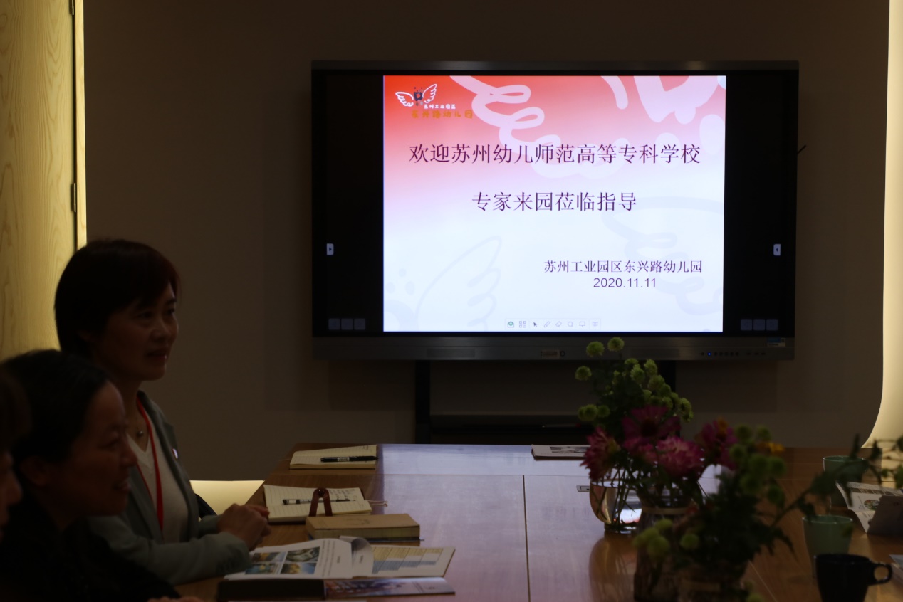 观察结束后,针对教师工作站建设相关事宜,双方进行了座谈,苏州工业园区娄葑街道党工委委员费岚、娄葑街道幼教管理中心主任顾一华、东兴路幼儿园园长徐健、副园长郑莉以及骨干教师一同出席了座谈会。