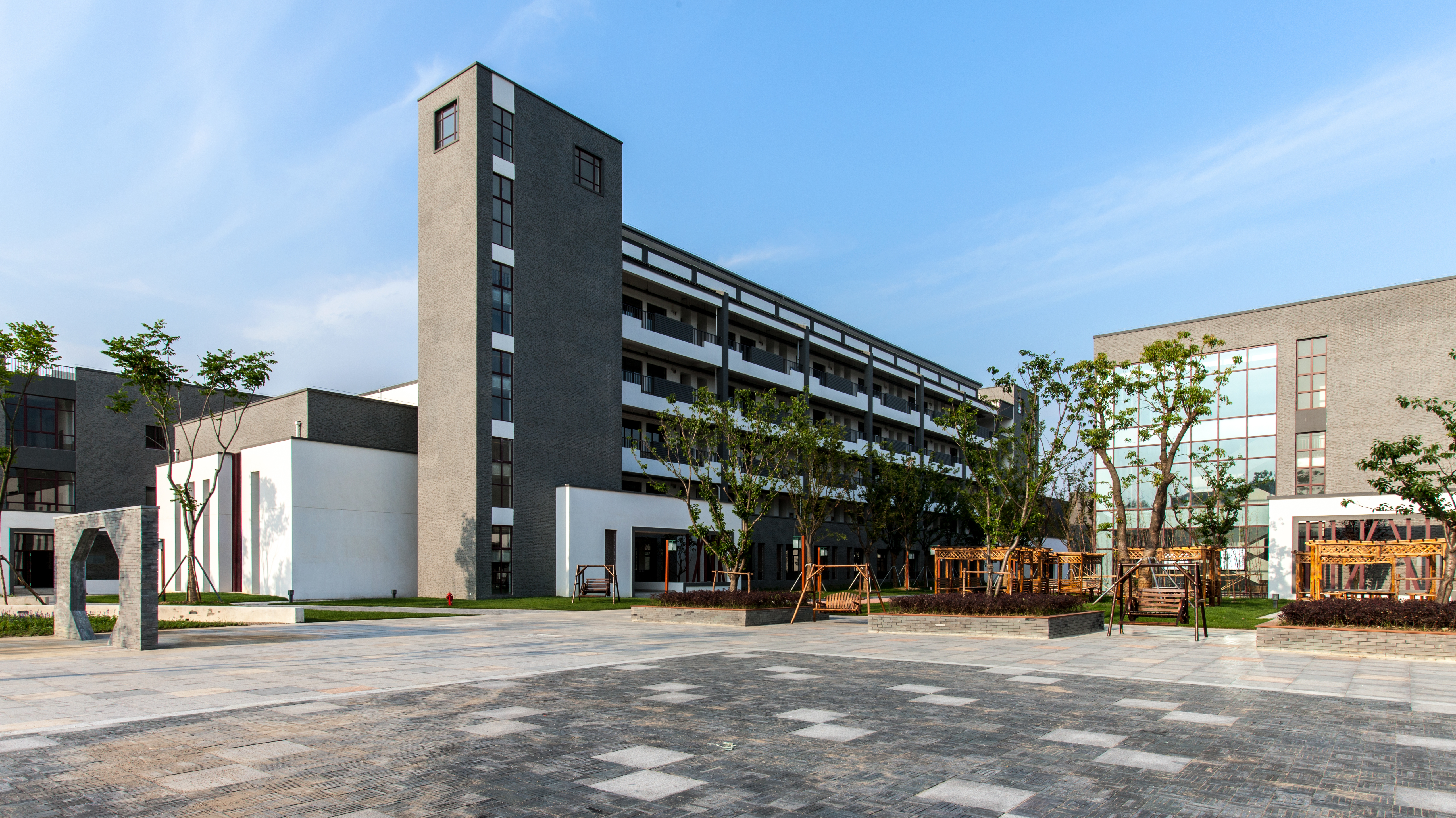 行政楼命名“照怀楼”主要体现向善取向。“照怀”源自虎丘校址“照怀亭”。照,光照也,怀,心中意也,二字连用有修身、立德意,又可意会为关照、关怀,有爱人意。行政楼命名“照怀”,寄意全体教工尤其党政干部、行政人员应修身立德,服务教育,关爱学生。