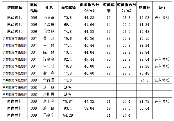 学校2020年公开招聘高层次人才面试及总成绩公示