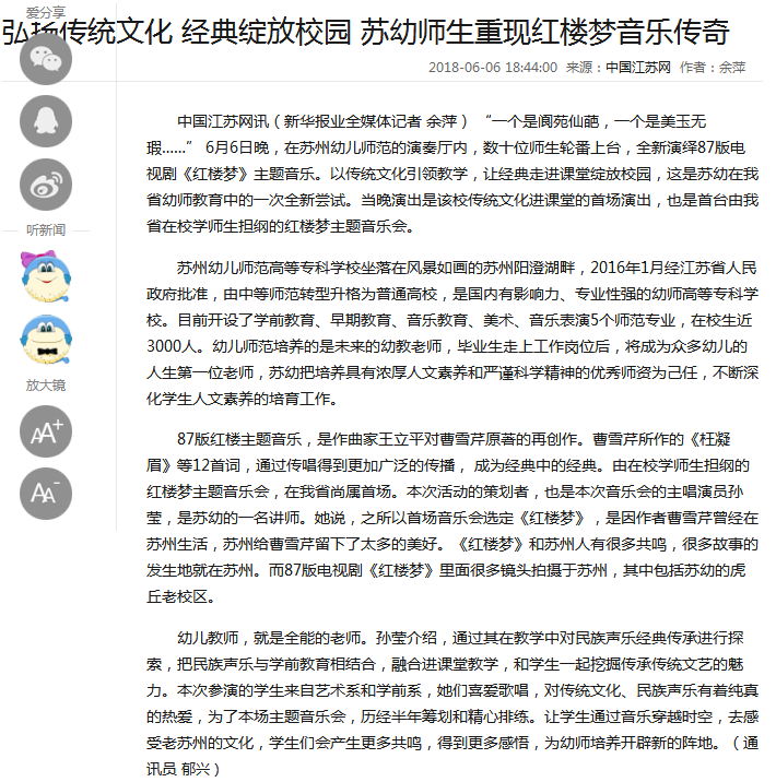 弘扬传统文化经典绽放校园苏幼师生重现红楼梦音乐传奇