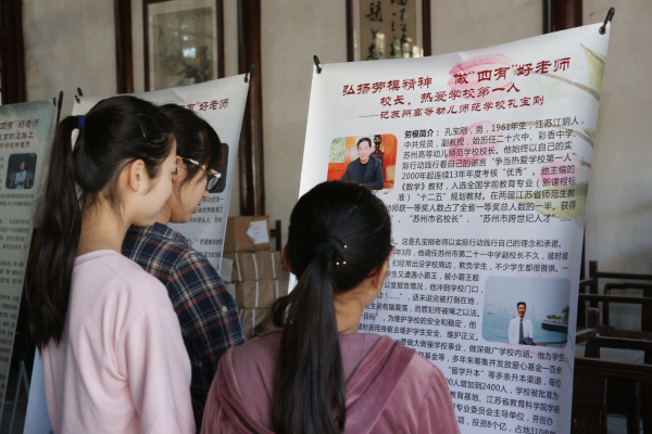 为在全市广泛宣传劳模先进事迹,苏州市总工会从今年五一国际劳动节开始开展“劳模精神进校园”展板巡展活动。5月12号,承载着劳模精神的展板进入我校,进行了为期一天的展览,受到我校师生的热烈欢迎。