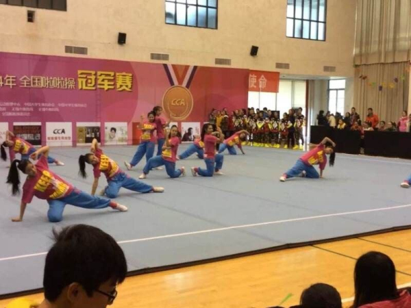 2014年12月12日,全国啦啦操冠军赛在江苏无锡隆重举行。本次冠军赛由国家体育总局体操运动管理中心、教育部学生体育协会主办。比赛设16个组别、20个项目的比赛,是目前我国啦啦操运动规模最大、水平最高的赛事,来自全国20多个省市的216支队伍、4200余名运动员参加了比赛。我校共40名啦啦操队队员在李小和、席菲菲、张如磊老师的带领下,参加了花球、街舞、技巧组三个组别的角逐,现场炫舞激情、活力四射,呐喊声几欲爆棚。