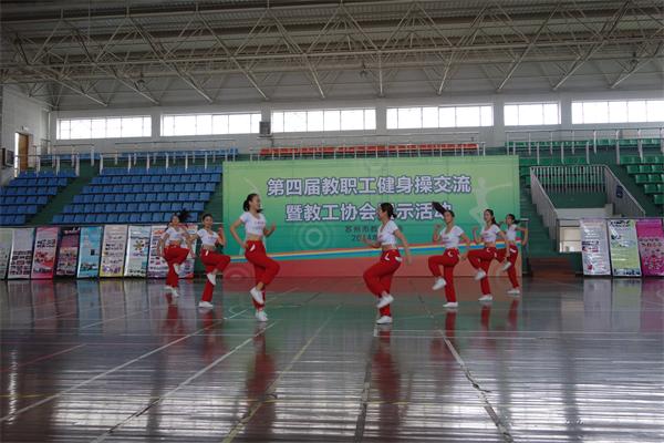 舞动青春 炫舞飞扬 时间:2014-11-03 00:00:00 浏览:次 分享到: 2014年11月1日,由苏州市教育工会组织的第四届教职工健身操交流暨教工协会展示活动在市一中举行,共有二十个学校参加了此次交流。我校派出了由附属花朵幼儿园的教师组成的队伍表演了充满活力的《炫舞花火》,赢得了阵阵掌声,并获得了最佳魅力奖。 本次活动还囊括了教职工协会、俱乐部、社团的展示活动,我校游泳社团作为代表参与了本次展板交流活动。 打印正文 关闭本页