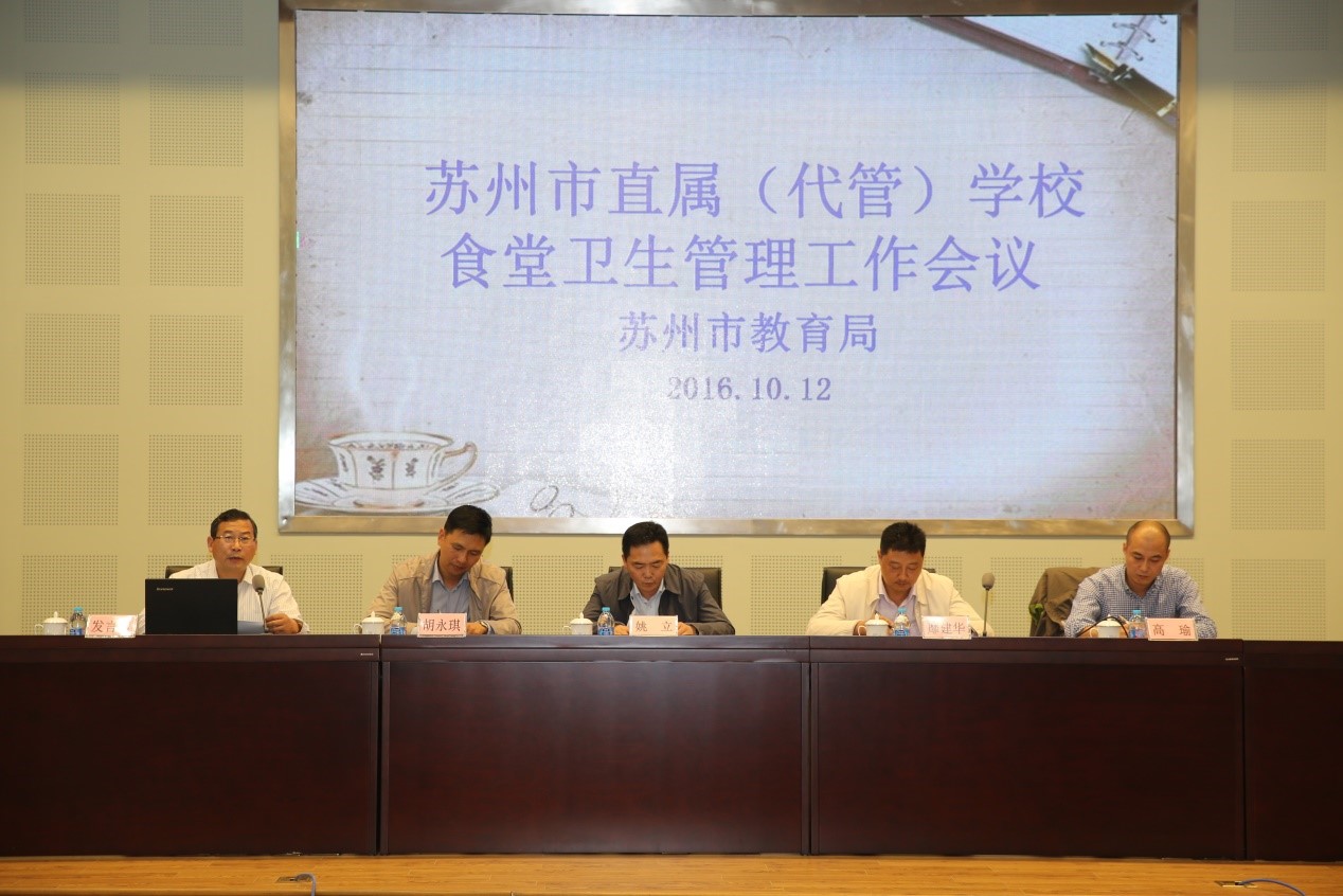 苏州市教育局体卫艺教处于2016年10月12日于我校召开苏州市直属(代管)学校食堂卫生管理会议。参加会议的有苏州市教育局体卫艺教处和发财处的相关领导,苏州市卫监所的相关领导,各直属(代管)学校负责食堂工作的校长及主任。