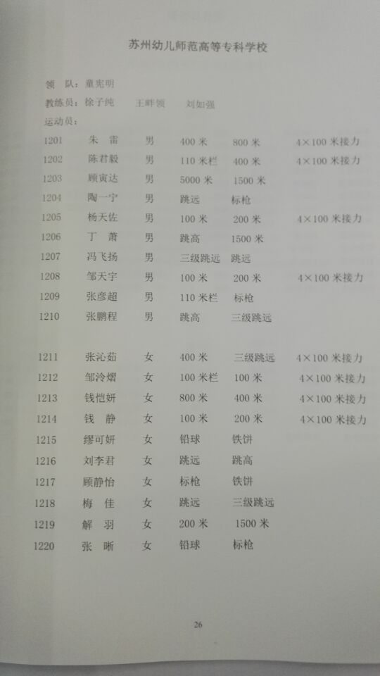 田径队参赛成员及教练组名单