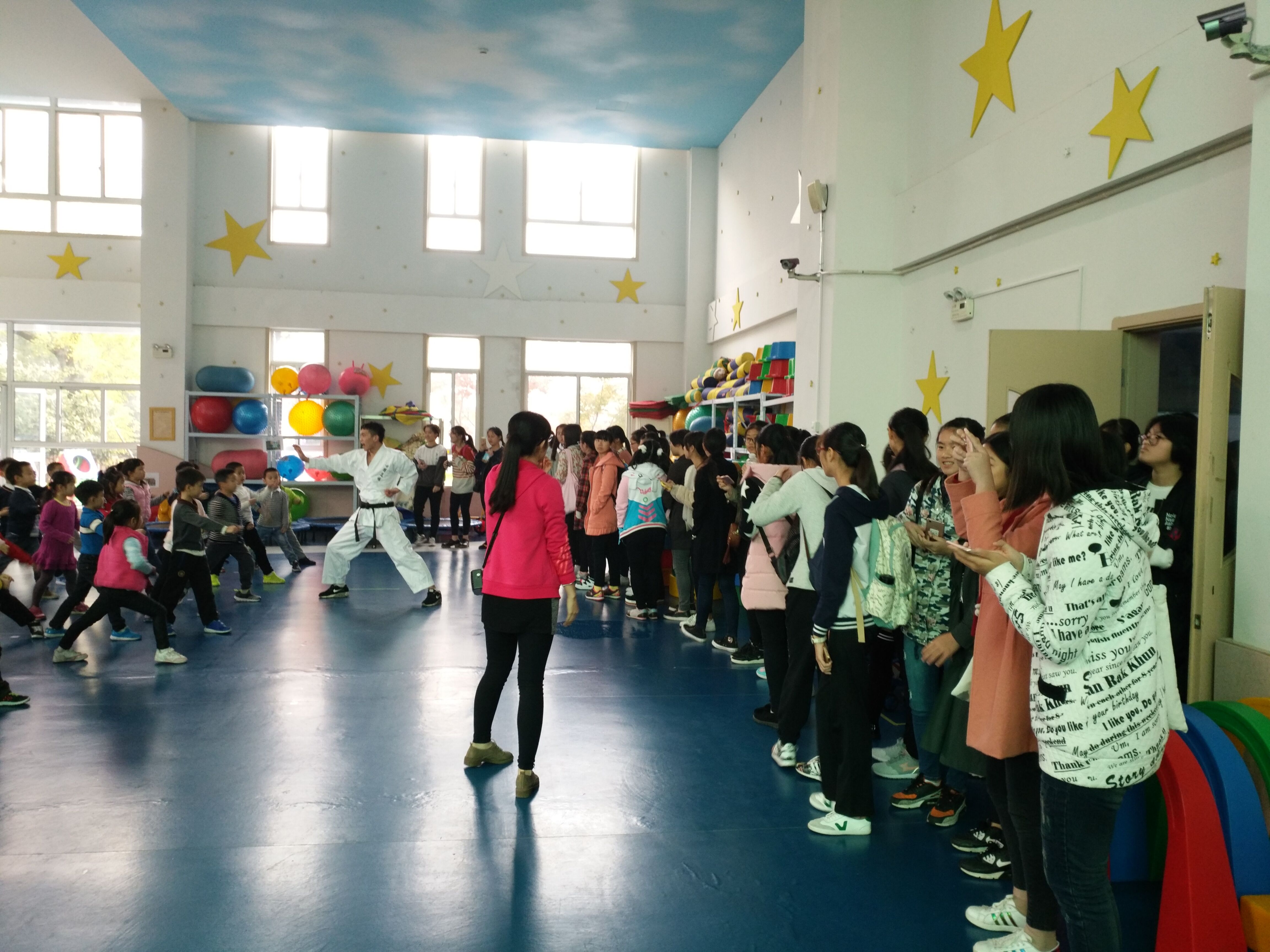 来到新馨花园幼儿园,同学们先集中学校小剧场听取魏园长对本次见习活动的安排,然后分散到各个班级观摩晨锻炼。接着又回到小剧场聆听魏园长作的题为《追寻研究,为师幼的共同成长》的讲座。魏园长介绍园所成长历程时讲到,该园成长过程中分为三个阶段:沿革传承期、顺势突破期、着力发展期。重点介绍了“微社区”特色体验课程的建设,即:课程资源的挖掘与利用;课程环境的营造与创设;课程理念的渗透与作用。讲座内容虽有较强的理论性,但同学们听得津津有味,互动热烈。最后幼儿园老师还带领同学们参观了园舍环境以及幼儿园各功能室,园内充满童趣、清新自然的环境无不让每个同学啧啧称赞。