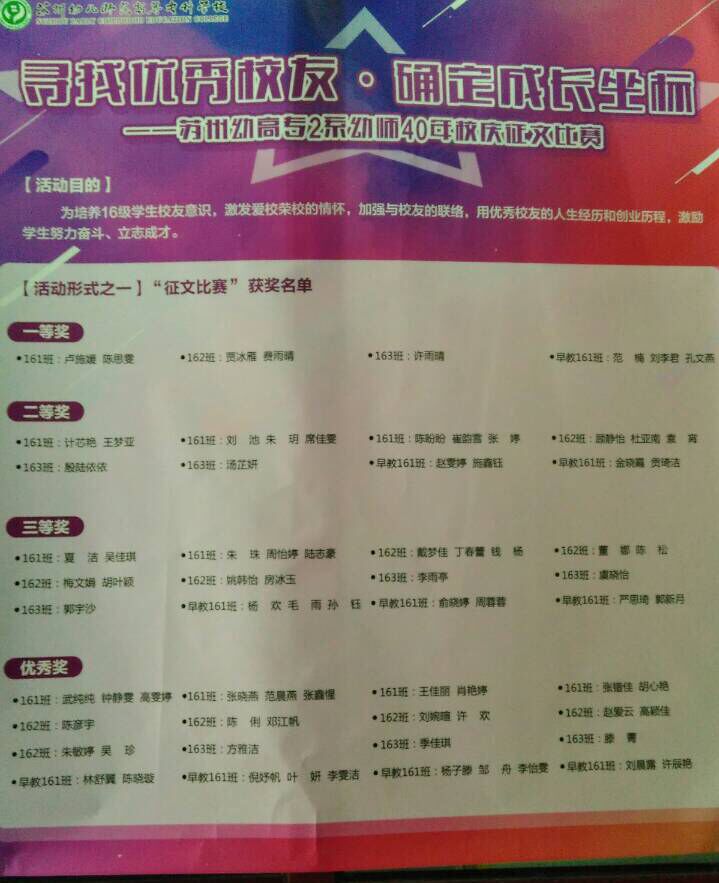 为了激发高专16级新生爱校荣校的情怀,在买球赛的app官网40周年校庆之际,学前二系举办了校庆征文比赛,并取得了圆满成功。