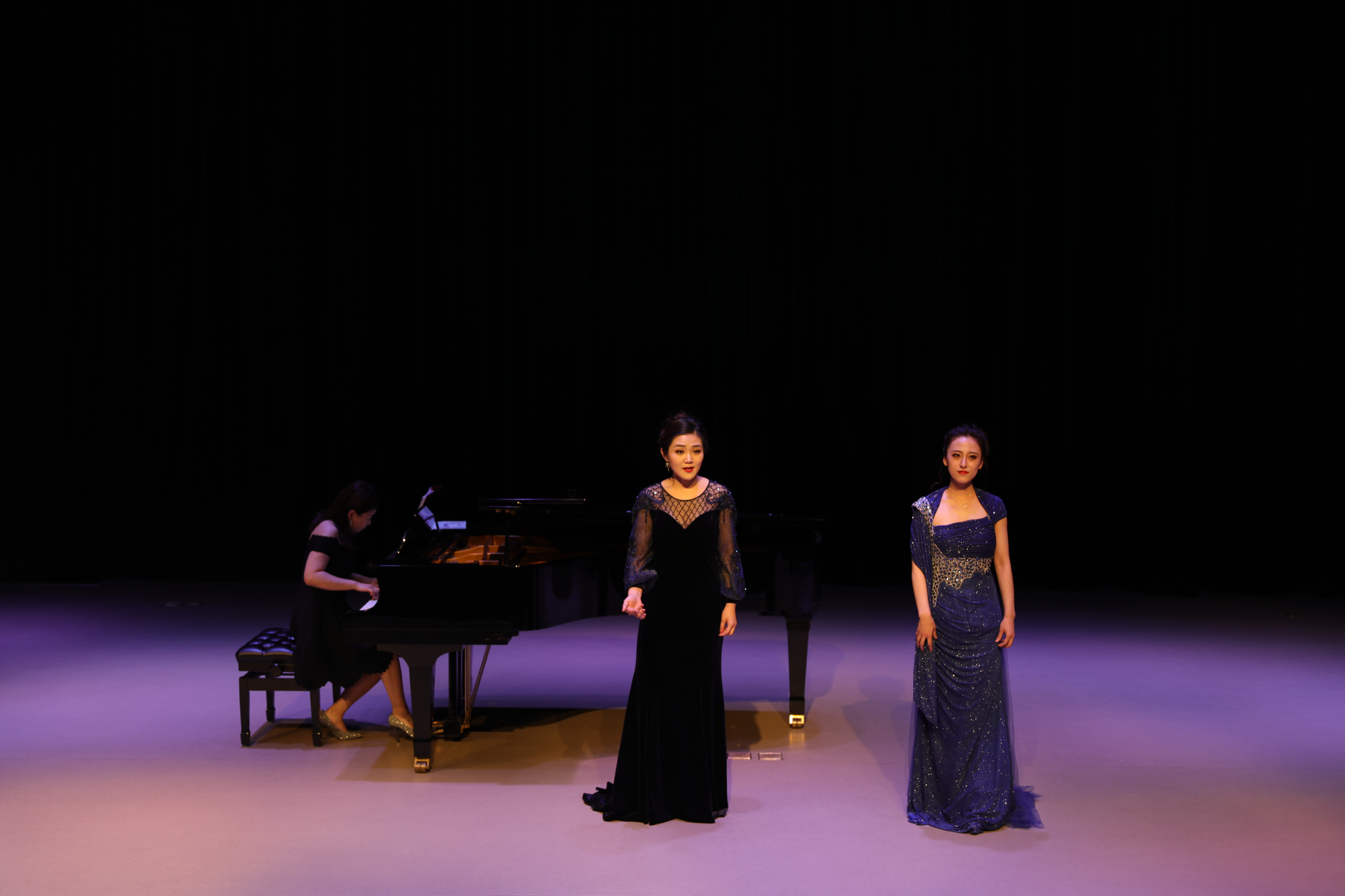 音乐会开始前,我校席雯婷老师作为主持人向大家着重介绍了朱艳红教授。朱教授起身向观众致意。一首江都民歌《拔根芦柴花》拉开了音乐会的序幕。青年歌唱家郅彧演唱的《对爱情忠贞不渝》选自莫扎特歌剧《女人心》,用喜歌剧的方式探讨了忠贞与不忠贞的微言大义。青年歌唱家刘杰演唱的《红土香》则饱含对土地的热爱。我校刘洺如老师演唱的《月亮颂》选自德沃夏克歌剧《水仙女》,表现了水仙女对爱情的渴望,是一首旋律优美、动人心弦的歌曲。青年歌唱家韩羽祺带来的《美丽家园》是一曲感人的故乡恋歌,令人动容。我校李晨冉老师带来的《草原之夜》是著名的小夜曲,歌唱了草原人民劳动和爱情的美好。青年歌唱家马豫、胡潇予演唱的《你那颗冰冷的心啊》选自普契尼歌剧《图兰朵》,是婢女柳儿对残暴的图兰朵公主的最后批判和劝诫。我校孙莹老师演唱的《知己红颜》是一首中国艺术歌曲,音乐情绪凄美,表现手法细腻而深刻,将一段爱情的爱恨情仇表现得淋漓尽致。郅彧、马豫联袂带来的《看吧,诺尔玛》选自贝利尼歌剧《诺尔玛》,是阿达尔吉萨与诺尔玛回忆自己往昔爱情的深情唱段。《木偶之歌》选自奥芬巴赫歌剧《霍夫曼的故事》,花腔女高音曹羽将木偶形象表现得非常生动,高音部分令人印象深刻。女高音刘晓月《我等待着任何拷打》选自莫扎特歌剧《后宫诱逃》,是剧中女主人公康施坦茨面对威胁时唱出的咏叹调,十分华丽。《珠宝之歌》选自古诺歌剧《浮士德》,变现了少女在闪闪发光的珠宝首饰前的虚荣之心。李晨冉、孙莹老师带来的二重唱《紫藤花》选自民族歌剧《伤逝》,以甜美、明朗、富有朝气的旋律抒发了子君与涓生对美好爱情的向往。音乐会在威尔第歌剧《西西里晚祷》选段《多谢了,我的朋友们》中缓缓结束。