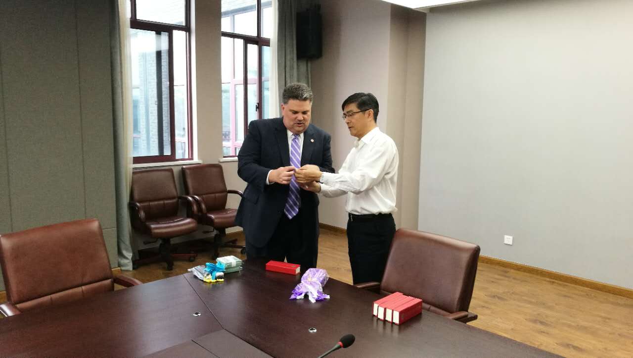 江苏卓越国际交流教育基金会及美国罗克福德大学来校商谈合作办学 时间:2017-05-25 11:00:45 来源:本站原创 作者:校办 浏览:次 分享到: 2017年5月23日下午,江苏卓越国际交流教育基金会理事长王斌泰,副理事长黄朝生,海外本科直通车项目主管汪侃,美国罗克福德大学校长Eric W.Fulcomer,副校长Matt Phillips,办公室胡盼一行,就合作办学来校进行交流。 会上,双方各自介绍了学校的情况,并就合作办学事宜进行了全面的磋商。 打印正文 关闭本页