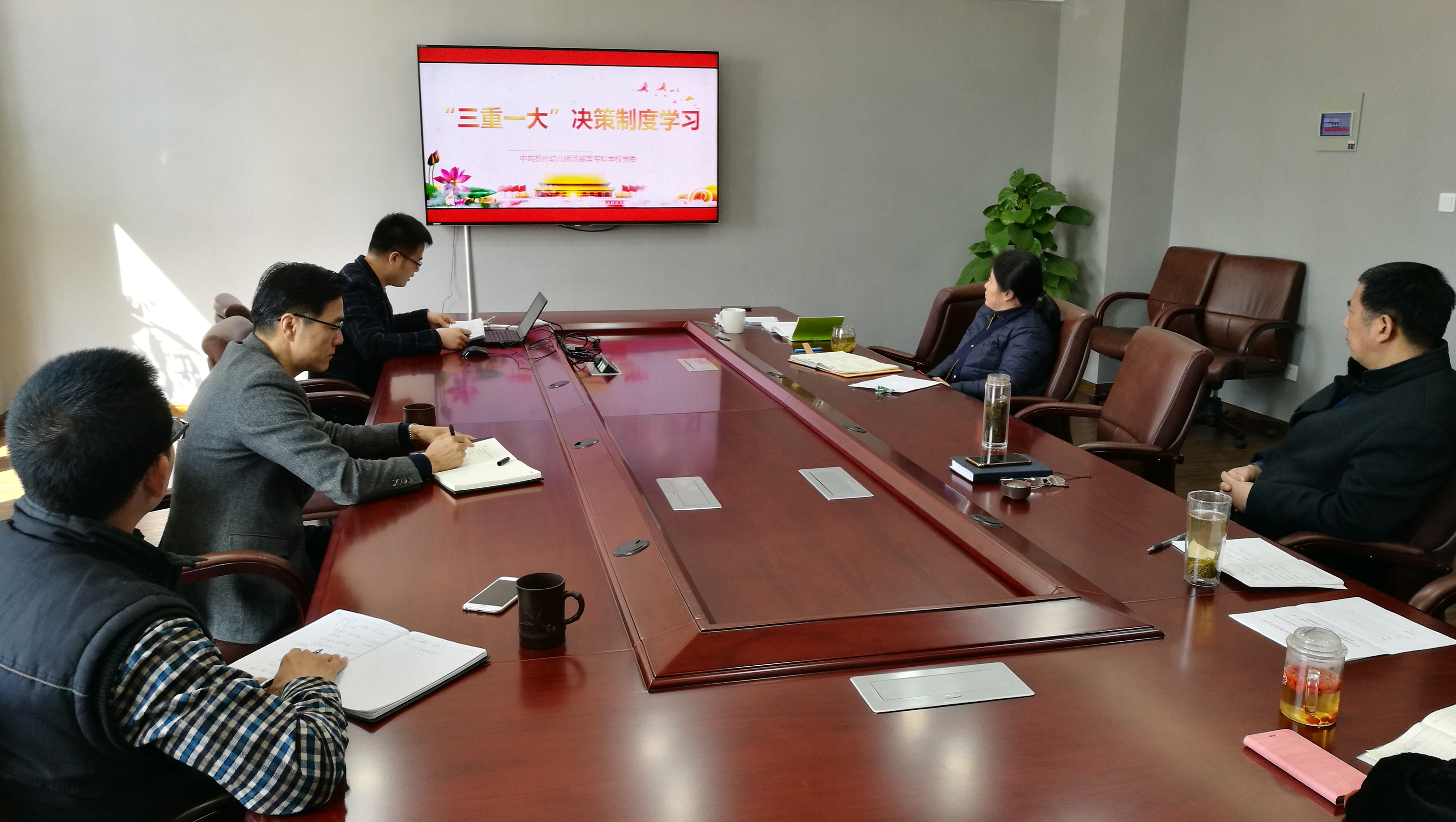 根据《省教育厅办公室关于开展“三重一大”决策制度学习考试工作的通知》(苏教办法函〔2018〕3号)文件精神,为深化学校全面从严治党,进一步推动学校贯彻落实“三重一大”决策制度,学校党委于2018年3月9日上午,开展了“三重一大”决策制度学习工作,纪检监察、校办、组织人事、附属幼儿园共同参加了学习。组织人事处潘伟斌副处长就《省委教育工委省教育厅关于进一步推进学校贯彻落实“三重一大”决策制度的意见》(苏委教〔2017〕10 号)等文件精神进行了全面解读。