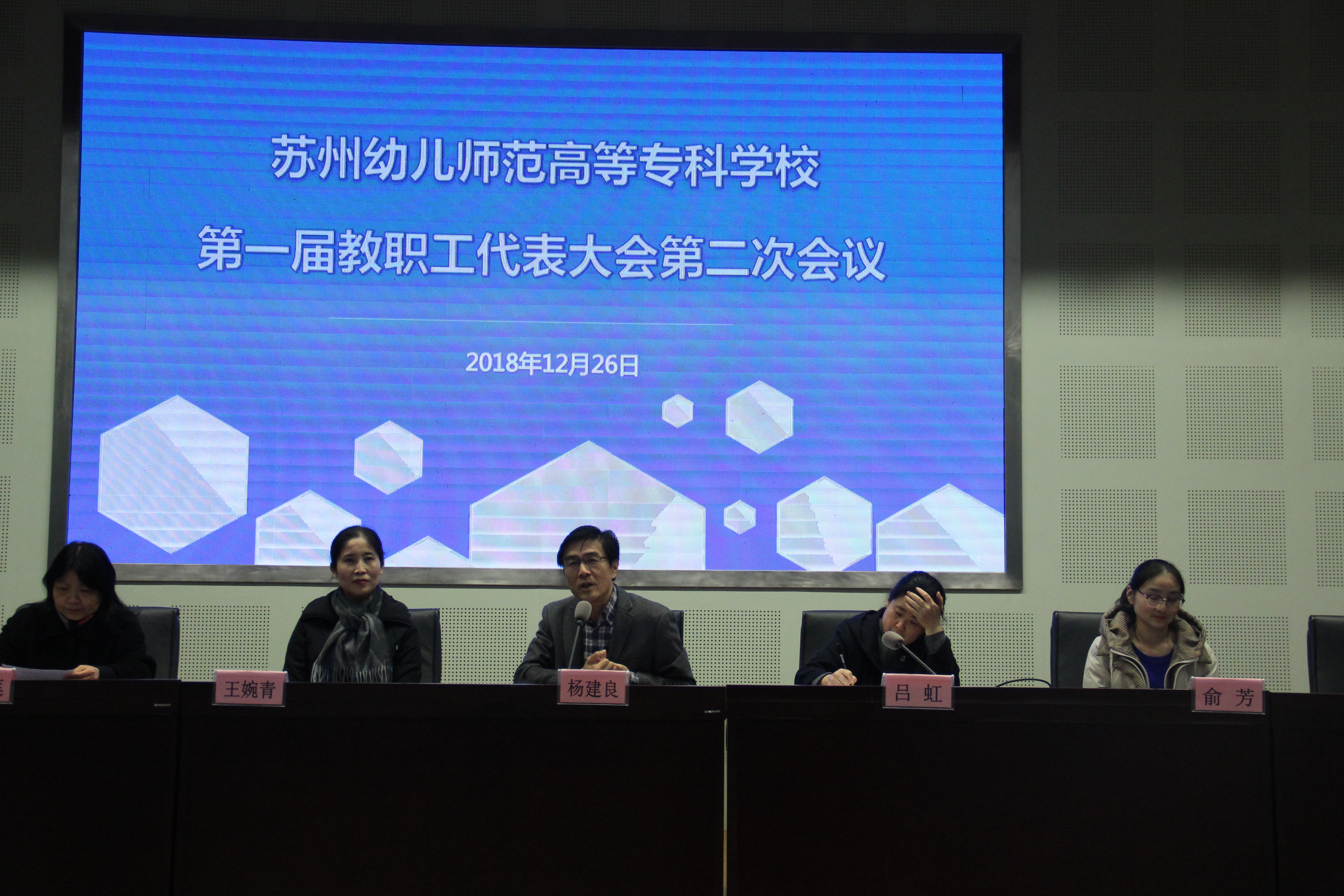 12月26日下午,我校第一届教职工代表大会第二次会议在校报告厅举行,苏州市人民政府教育督导室督政处处长李颖、我校教代会代表、全体党员、中层干部及退休教工代表出席了大会。会议由工会副主席王婉青主持。