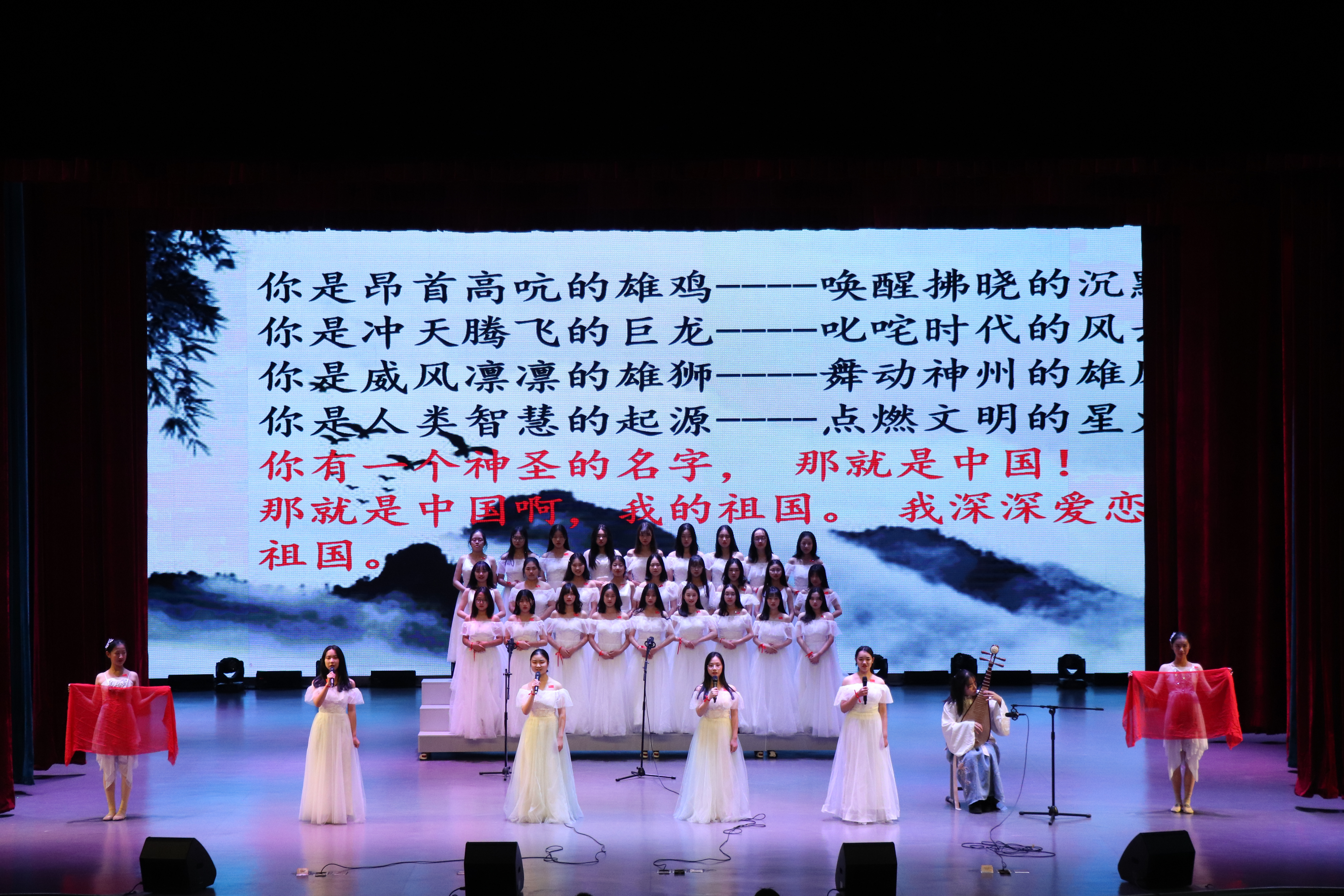 随后,进行了读书节部分活动的集锦展示。在“乡音话故乡”活动中表现优秀的6名同学通过《秦淮景》向大家展示了方言的文化魅力;在“走近曹文轩”读书报告会上有着精彩表现的学前1系158班与175班同学再现了曹文轩经典作品的柔美与细腻;学前1系181班的新生则通过剧情演绎的方式呈现了《城南旧事》中的经典片段,展示了“我读我秀”活动的别样风采;最后,在经典诗文诵读大赛中荣获一等奖的学前1系175班全体同学以一篇激昂深情的《我的祖国》为全场呈现了一份浓烈的爱国之情。这些围绕着阅读展开的优秀活动或形式新颖或感情深厚或构思精巧,从影、视、听多个角度让同学们感受到了浩瀚书籍中蕴含的巨大力量。
