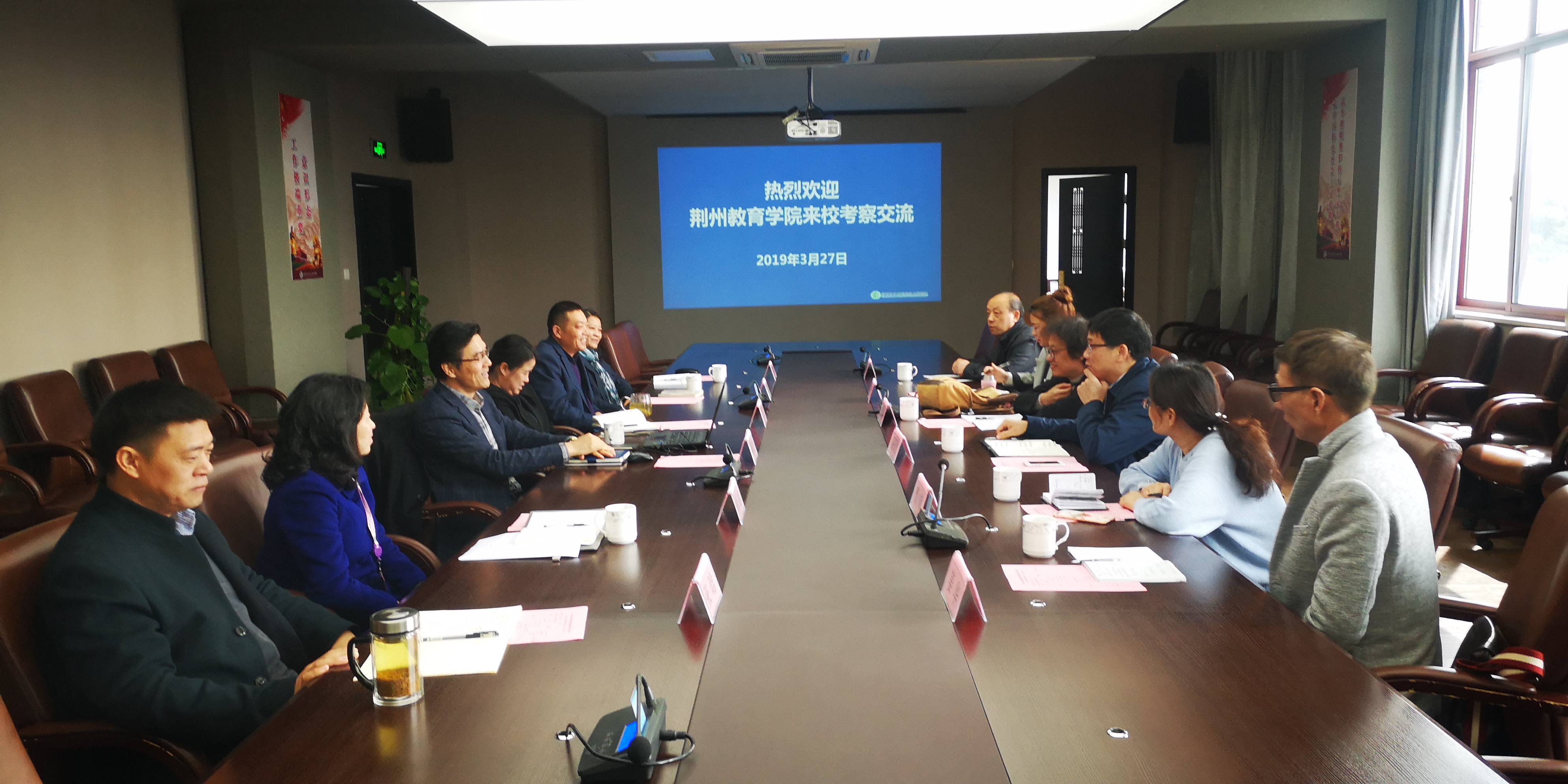 荆州教育学院来我校考察交流 时间:2019-03-28 15:55:27 作者:校办 浏览:次 分享到: 3月27日,由荆州教育学院党委书记、院长潘贤君、教务处处长曹小妹等一行6人来我校参观考察,我校校长杨建良、副校长吕虹及教务处、学前一系、二系、基础部负责人参与了座谈交流。会上,双方就学前教育专业建设、师资培养、教学改革等内容进行了深入交流。交流结束后,潘贤君书记一行参观了校园环境及学前教育各类专室等。 打印正文 关闭本页