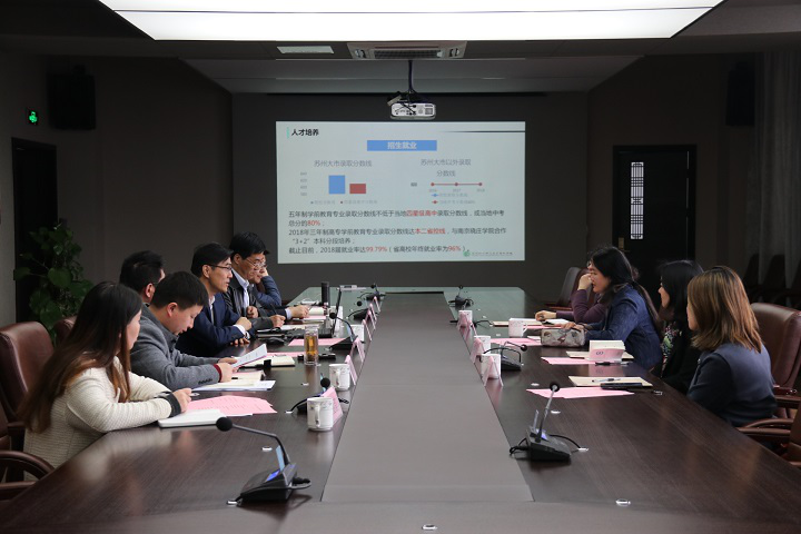4月2日,苏州广电总台副台长沈玲、广播中心主任祁麟等一行4人和江苏凤凰职业教育图书有限公司纪委书记曹富林、事业部主任汪立亮等一行3人来校研讨晨读人文经典丛书朗读音频制作和学前教育领域文化宣传合作相关事宜,我校校长杨建良、副校长陶华山及相关处室负责人参与交流研讨。