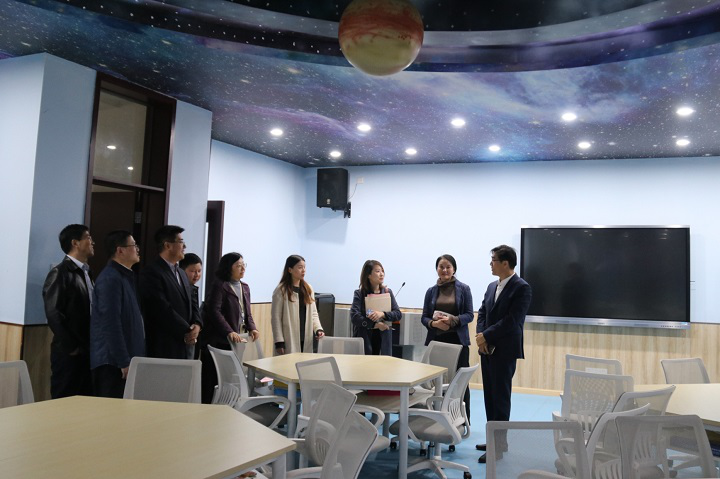 杨建良校长介绍了学校办学历史、办学特色、人才培养、校园文化建设等方面的情况,团委副书记周慧明介绍了晨读经典人文丛书的策划与编写。苏州广电、江苏凤凰职教和我校就丛书配套音频制作的具体事宜进行深入的交流和研讨,并达成合作共识。随后,沈玲副台长讲话,提出未来将与我校在学前教育领域开展更广泛、更深入的宣传合作。交流后,沈玲一行和曹富林一行在校领导的陪同下参观了校园及各类专业教室。