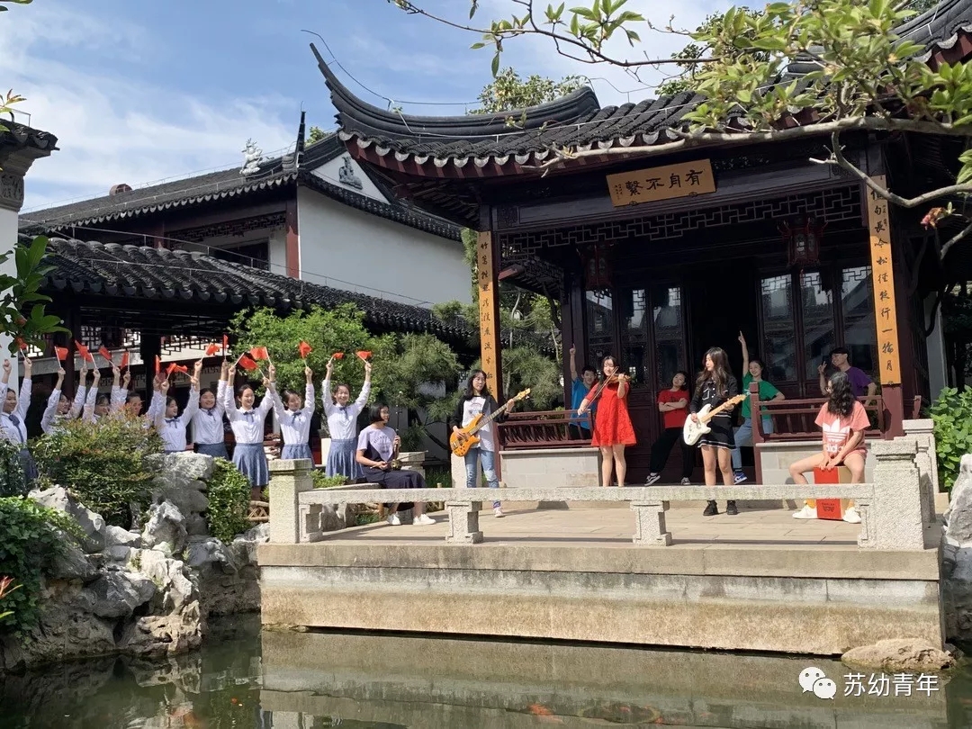 “我和我的祖国,一刻也不能分割,无论我走到哪里,都流出一首赞歌……”2019年5月4日,值五四运动百年之际,我校师生从苏州教育博物馆出发,经盘门景区,由护城河一路船行至觅渡桥,来到金鸡湖畔和苏州中心世纪广场,开展“青春颂祖国·点赞新时代”主题快闪活动,在这座古典与现代交融的千年古城,以歌伴舞《我和我的祖国》和《点赞新时代》的形式,展现出当代青年的家国情怀与青春风采。