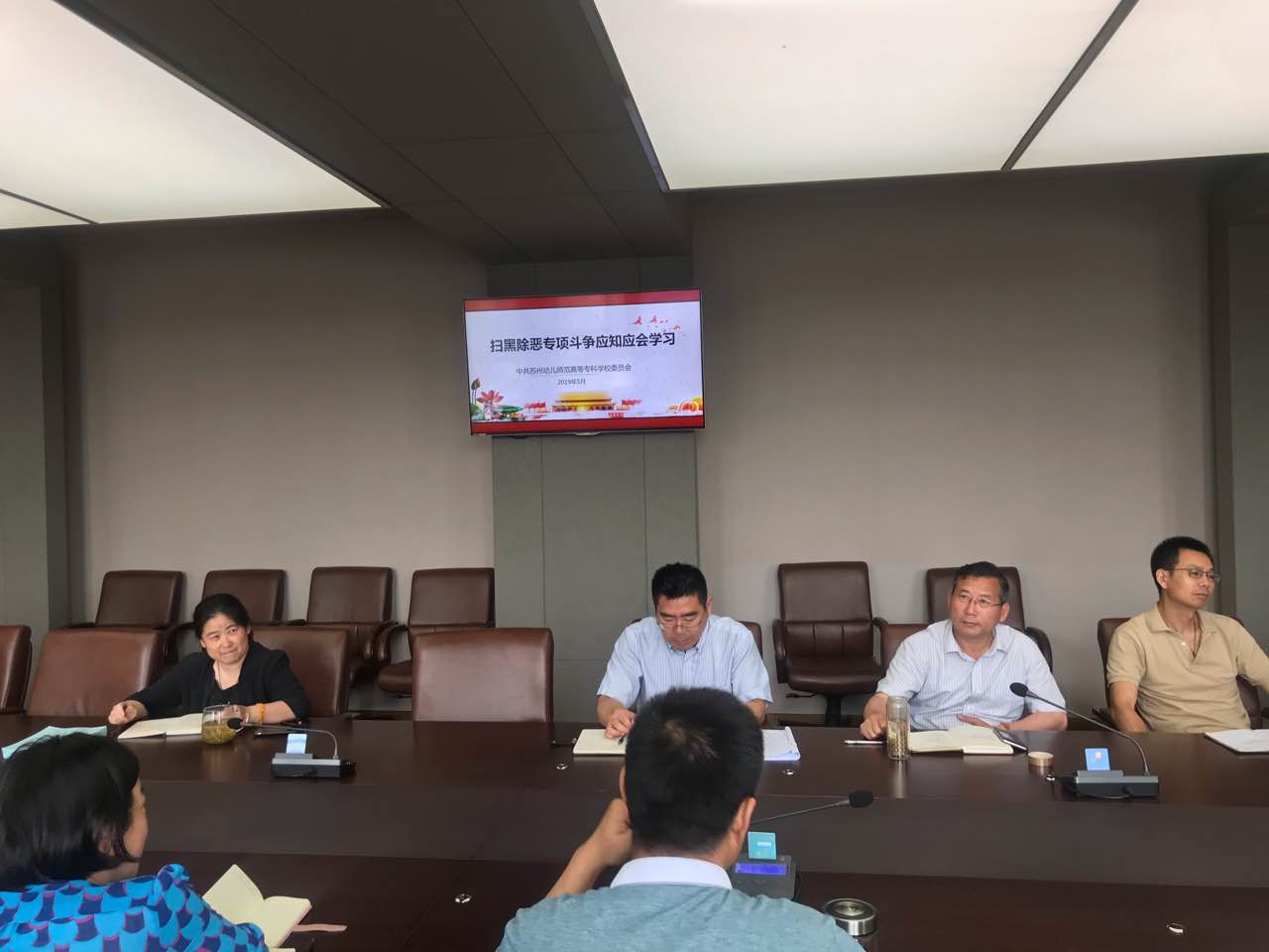 根据苏州教育局5月25日召开的直属(代管)学校(单位)扫黑除恶专项斗争工作现场推进会会议精神,苏州幼专继续认真贯彻落实关于国家、省市关于扫黑除恶专项斗争的工作精神,在前期“扫黑除恶专项斗争应知应会”学习的基础上,再次组织了各部门负责人进行专题学习,确保各项精神入脑入心。