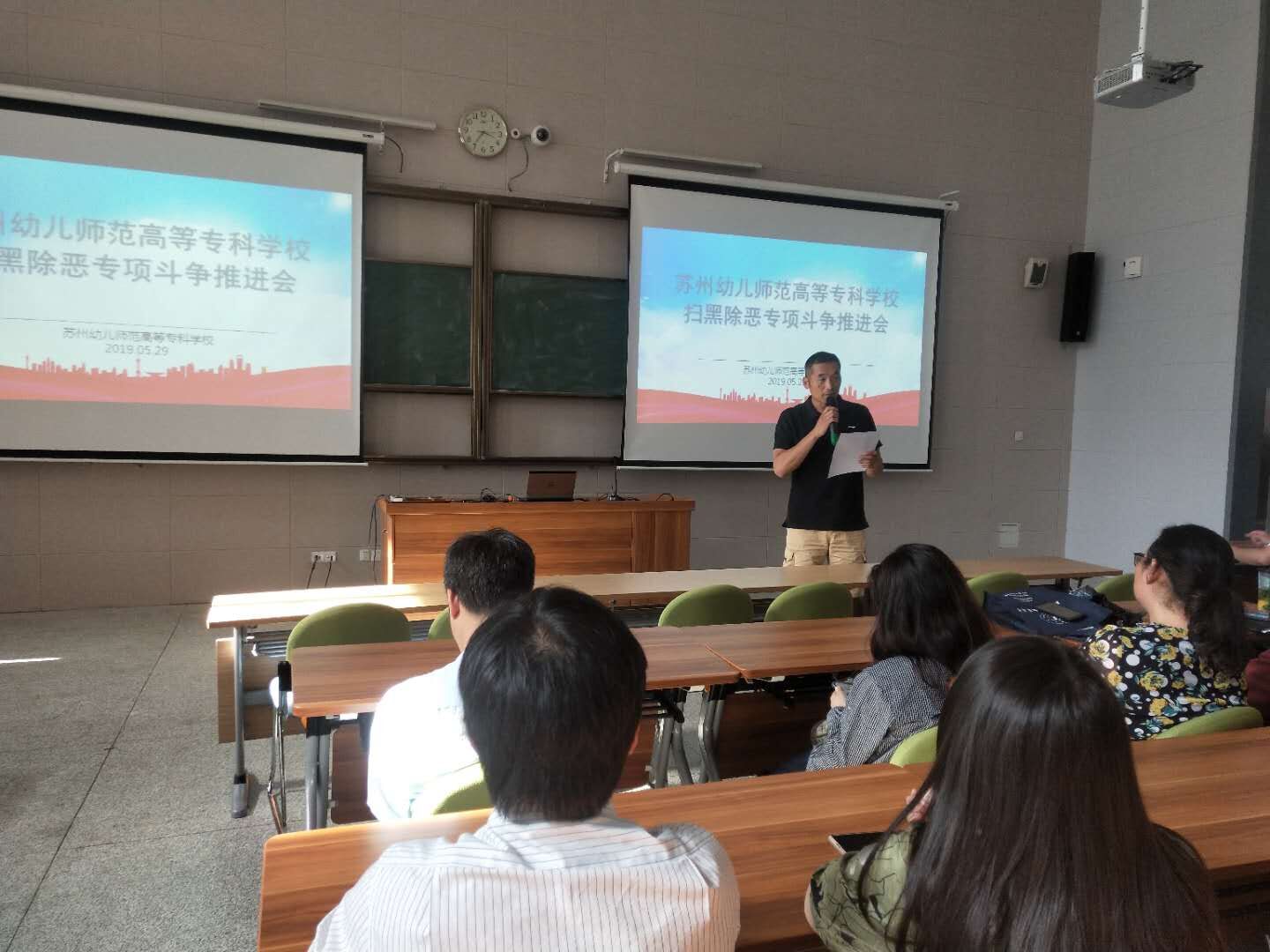 陶华山副校长指出,全体教职工要进一步提高政治站位,深刻认识扫黑除恶专项斗争的重大意义,认真学习领会“扫黑除恶应知应会”精神。同时,陶华山副校长要求学校“扫黑除恶专项斗争工作小组”认真贯彻落实上级精神,继续做好台账准备、“扫黑除恶”主题党日、支部自检等相关活动,将“扫黑除恶”工作真正落在实处。