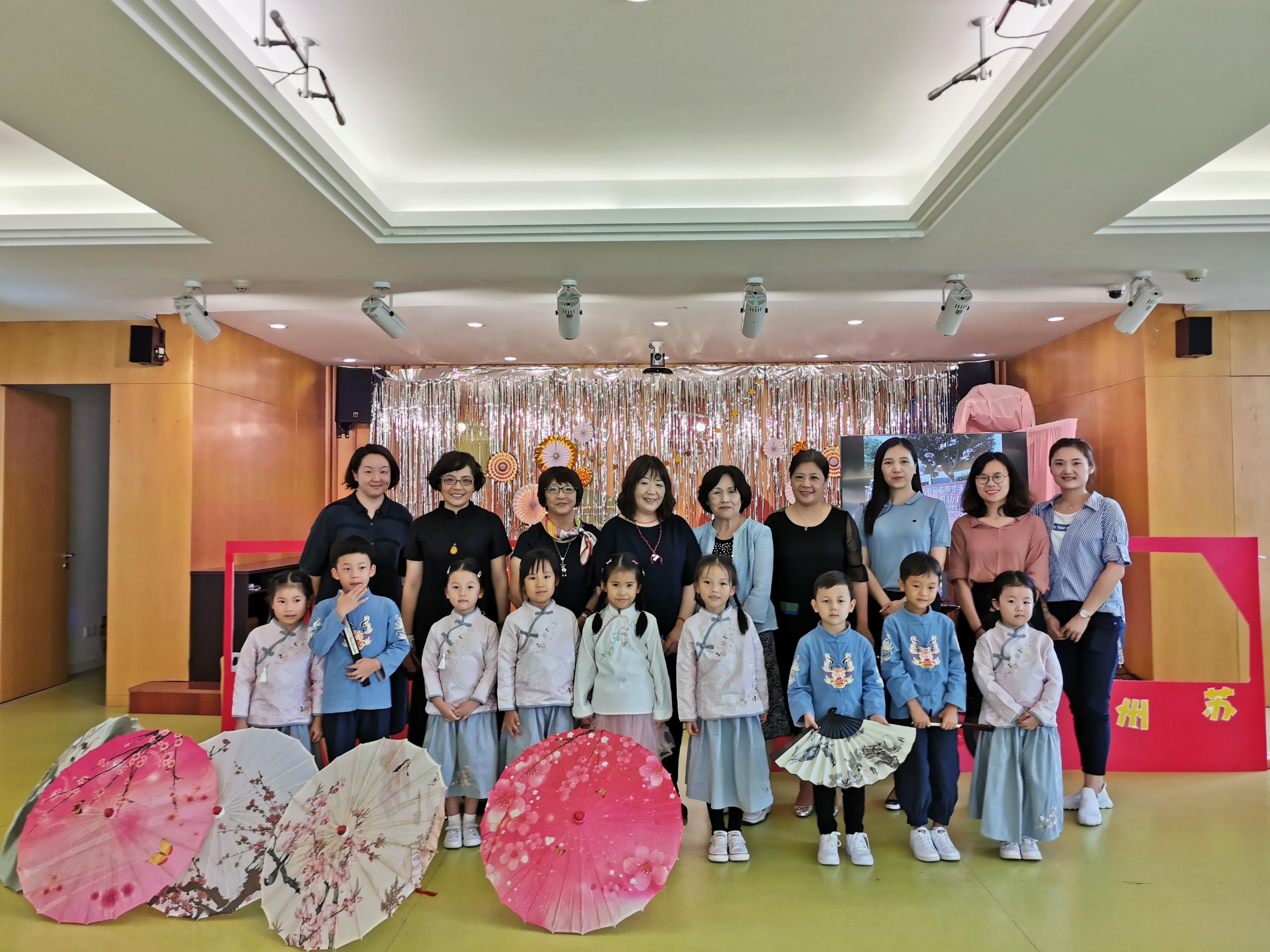 日方代表三人一行参观了花朵幼儿园的木工区,美术创意区,泥工区,果树林,建构区,体能区以及教育幼儿园的视听室,精工坊,科学发现室以及木工坊,儿童体检中心,儿童保健馆等,在这些创意满满而又知识丰富的教室里,三位幼儿园代表和小朋友亲切互动,还收到了小朋友亲手制作的DIY贺卡以及布艺饰品。教育幼儿园小朋友们为大家准备的节目《苏州风光真真好》构思新颖,表演精彩,获得了大家的喜爱。