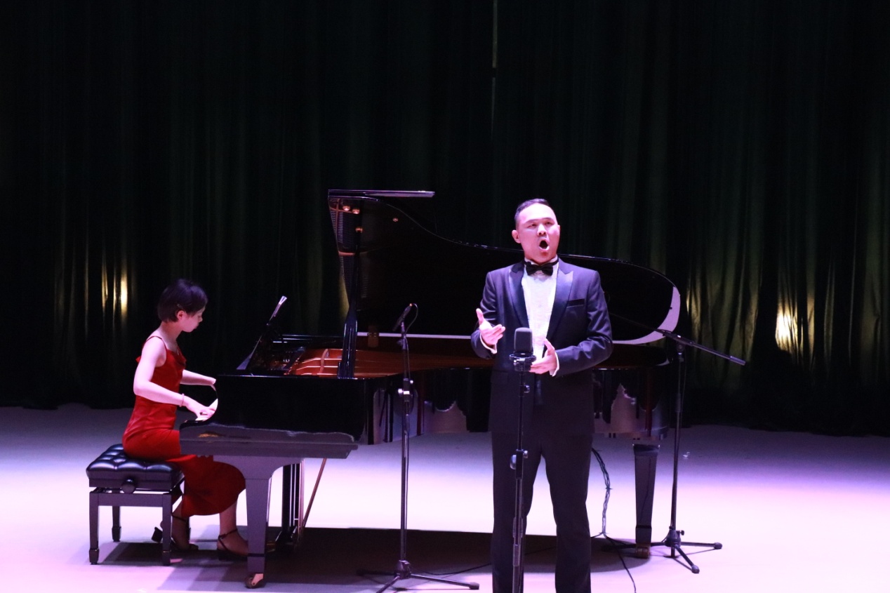 本次献礼祖国七十华诞的“教我如何不想她”音乐会,将最美好的歌声、最真挚的情意献给伟大的祖国母亲,既是王锋老师的初衷也是发自内心的声音。整场音乐会由他一人担任独唱,苏州新东方教育集团的托福口语老师朱宇寰担任钢琴伴奏,特邀嘉宾——我校李士江老师和周扬帆老师为音乐会助力。整场音乐会结构安排紧凑合理、层次分明、张弛有度,不啻是一场美轮美奂的音乐盛筵。