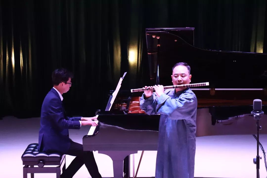 音乐会以一首无限深情的《教我如何不想她》作为开场点题,在王锋老师的演绎下,传统歌谣的复迭手比兴手法,余意不尽,余韵悠然,带领听众进入艺术的意境,感染了在场的听众,激起人们的拳拳爱国之心。《嘉陵江上》《松花江上》等时代歌曲歌颂了中国人在面临民族危亡的时刻誓死守卫国土,抵御外敌侵略的勇气和决心,让大家回忆起峥嵘岁月中坚强不屈的抗争精神,也深深传递了对革命先烈的崇高敬意;《大江东去》以一种饱满而雄壮的气势开头,后面娓娓道来的旋律“遥想公瑾当年…”则带领听众穿越历史的时空,领略赤壁战场的惨烈和周公瑾的文韬武略和卓越风姿,而结尾处的“人生如梦,一樽还酹江月”又表达了对于人生这一哲学命题的无限慨叹;《黄河颂》、《江河万古流》则热情的讴歌了中华民族的伟大精神和母亲河的气势磅礴,表达了对长江、黄河的万古源流的无限赞叹和华夏民族的悠悠情思;《我爱你,中国》《我和我的祖国》则表达了中华儿女对祖国母亲的无限深情和衷心祝愿:国富民安、繁荣昌盛!中场的两位嘉宾李士江、周扬帆两位老师带来的《查尔达什舞曲》,这首由小提琴曲改编而来的乐曲,用中国传统乐器竹笛演奏则别有一番风味,充满激情的节奏,流畅而华丽的小调旋律给听众带来了无限惊喜。