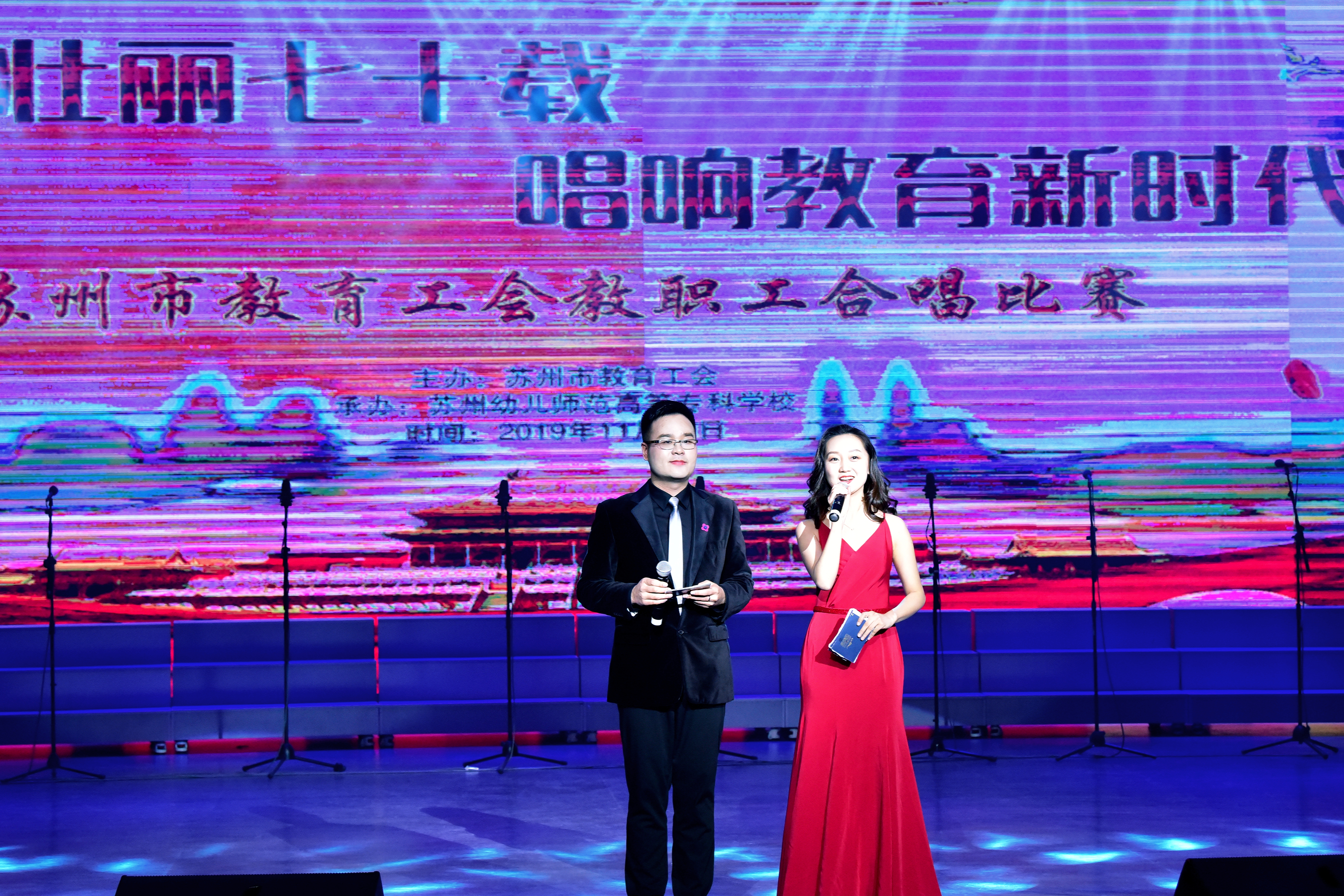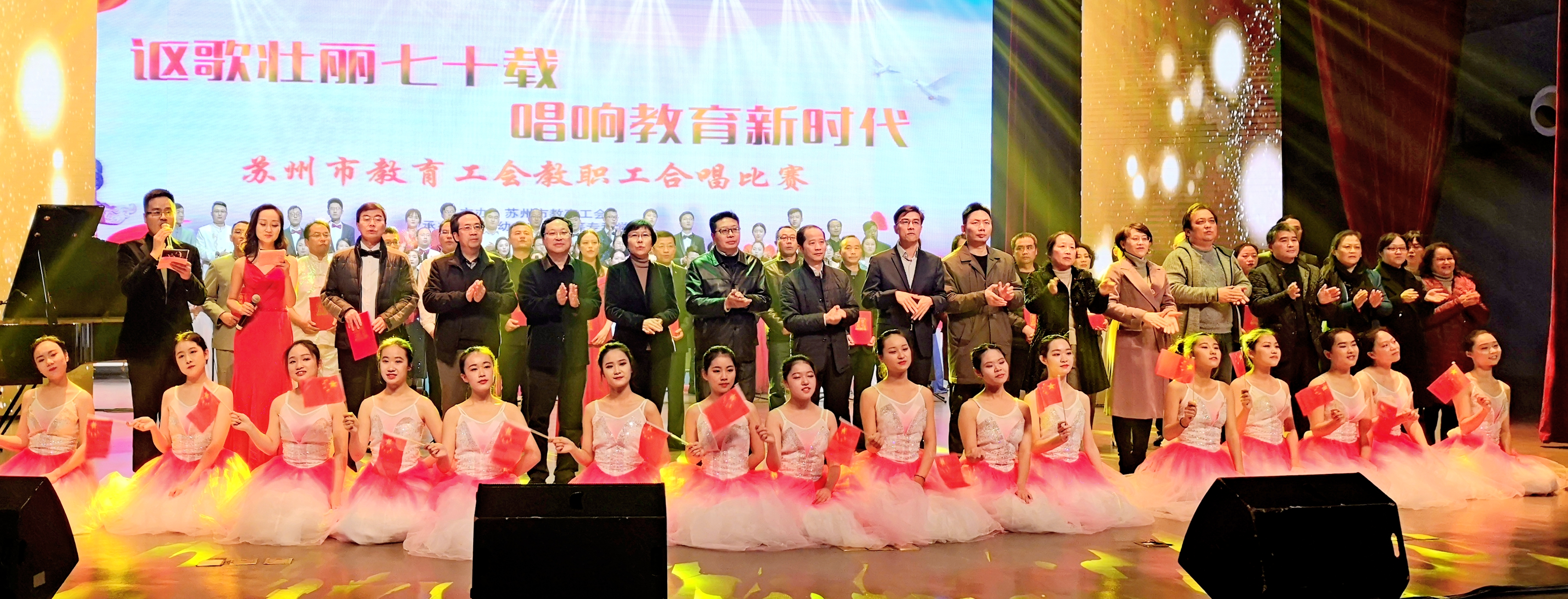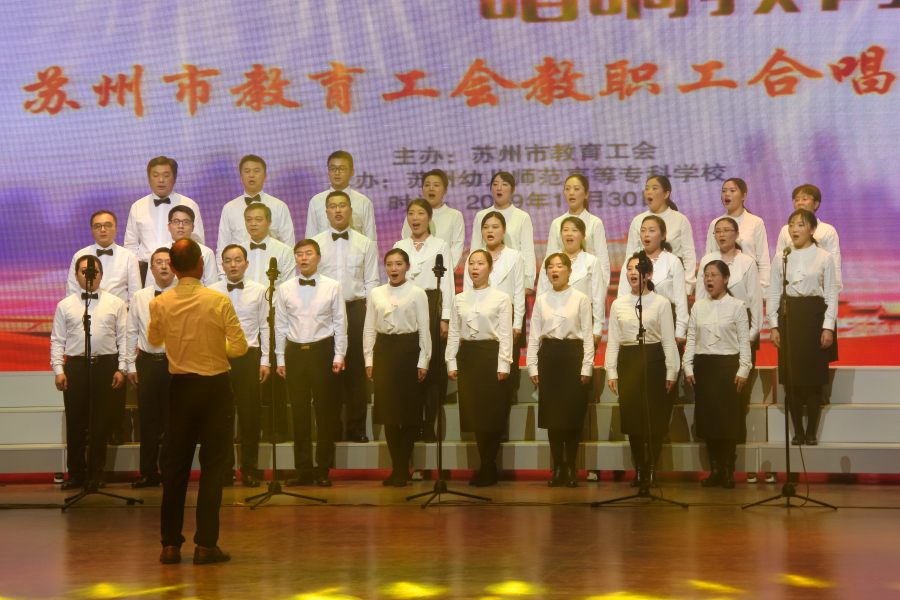 11月30日下午,由苏州市教育工会主办的“讴歌壮丽70载,唱响教育新时代”苏州市教育工会教职工合唱比赛,在我校演出厅如期举行。来自全市的18支合唱队共1000多名教职工,用嘹亮歌声讴歌新时代,唱响新中国。