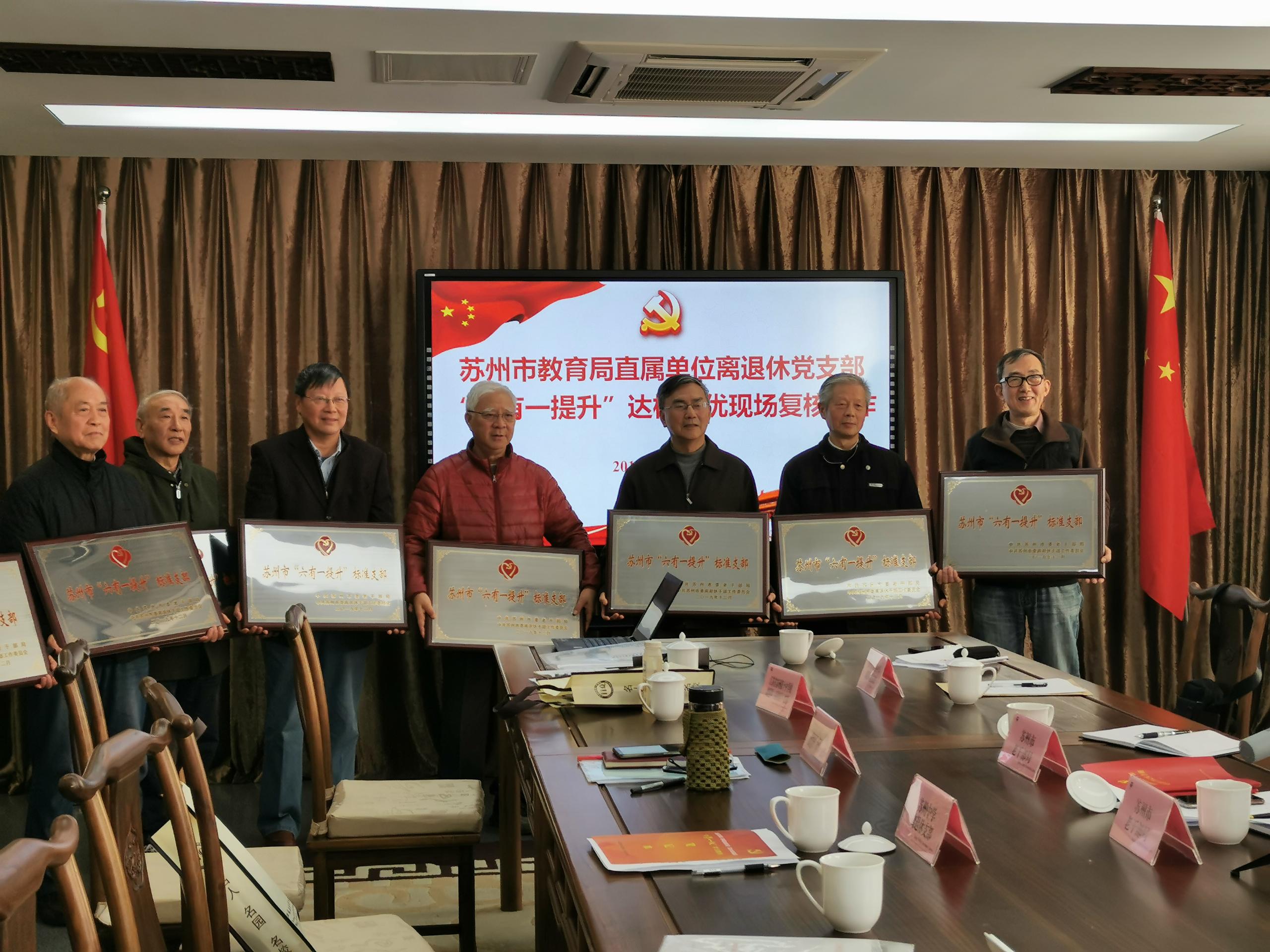 2019年12月16日上午,根据《苏州市离退休干部党支部“六有一提升”达标创优实施细则》以及《关于做好离退休干部党支部“六有一提升”达标创优复核工作的通知》(苏教离函〔2019〕4号)文件精神,苏州市教育局直属单位离退休党支部“六有一提升”达标创优现场复核工作在教师发展中心四楼报告厅举行,我校退休支部书记汪乃铭校长、组织人事处张晓丽老师参加了本次会议,会议由市教育局组织处周芸处长主持。