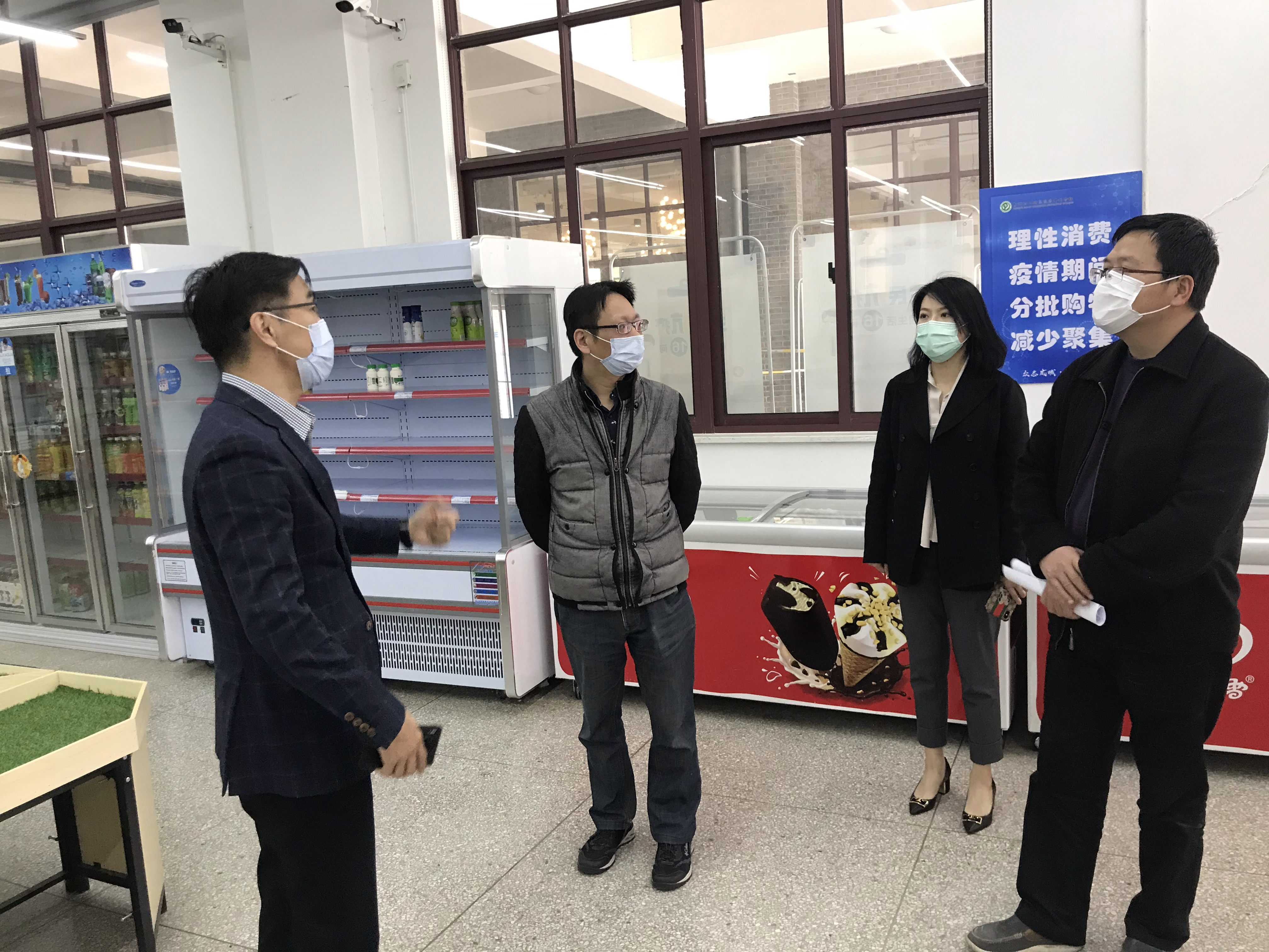 张国镇副局长一行按照开学报到当天的流程,实地查看了学校的临时隔离点、物资储备室、食堂、宿舍、超市等场所,并就超市限流、转运车辆落实等内容提出了细致的整改要求。