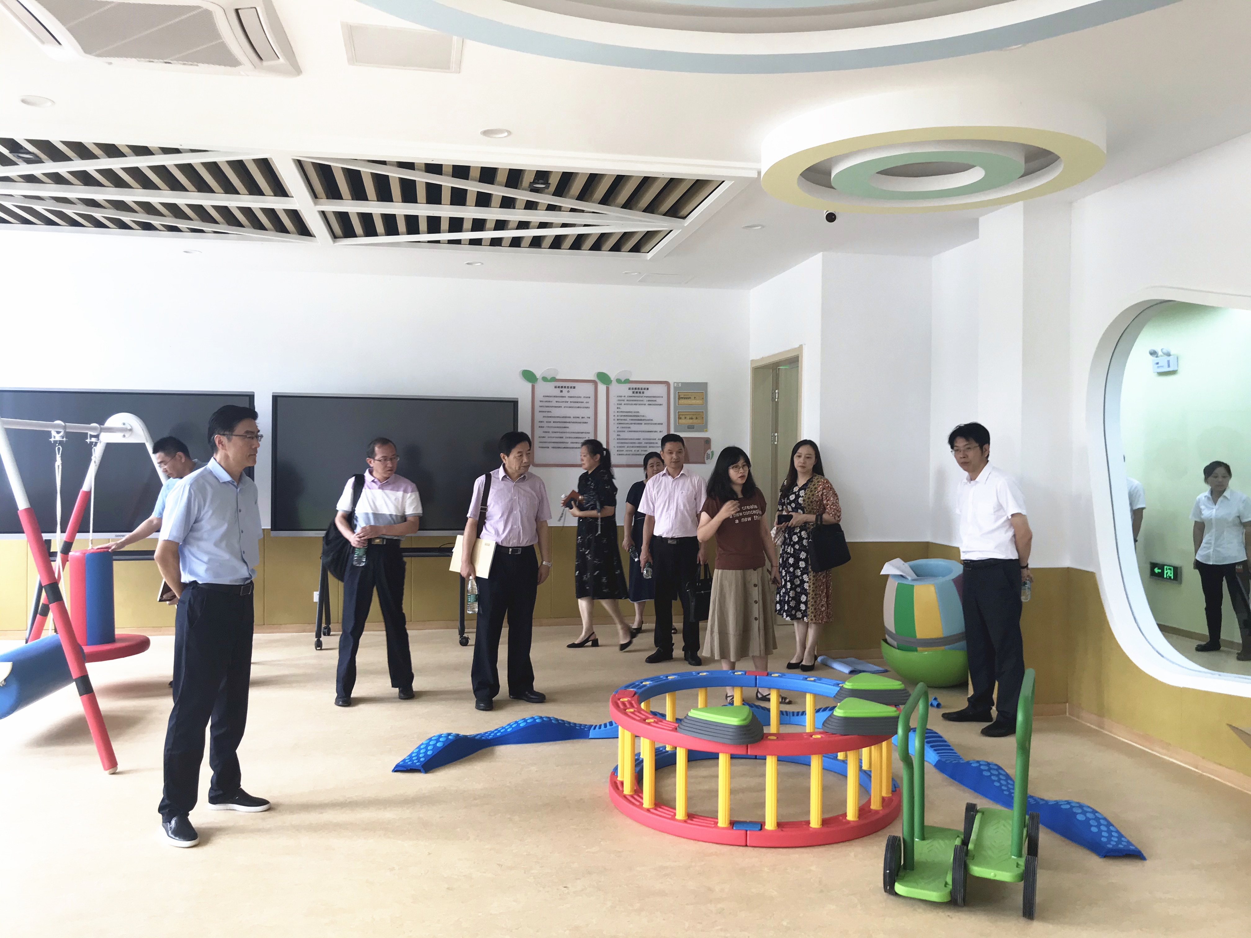 项春雷副局长一行在杨校长的带领下先参观了我校即将启用的培训大楼。学前二系杨俐副主任为项局长等详细介绍了培训楼内的国际交流中心、早教中心、幼教中心、育婴师培训中心、教师教学技能训练中心等五大中心的功能及定位,中心内先进的设施设备受到了检查领导的一致好评。