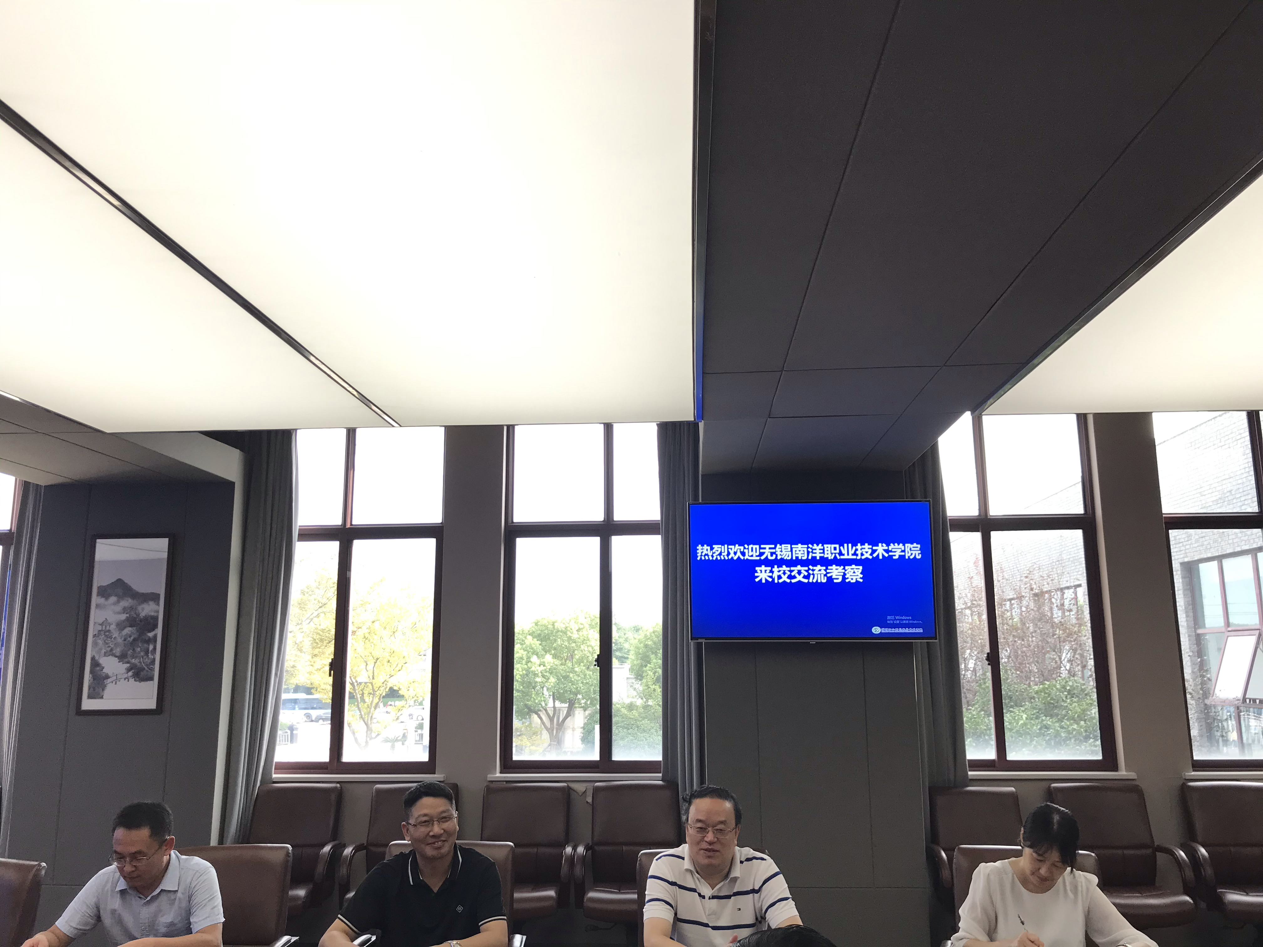 无锡南洋职业技术学院来校交流考察 时间:2020-09-11 17:26:58 来源:办公室 作者:办公室 浏览:次 分享到: 9月11日下午,无锡南洋职业技术学院党委书记、校长周肖兴,教育发展中心主任朱仕虎,国际学院院长王韵,国际学院党总支书记张强一行4人来校交流考察,我校杨建良校长、吕虹副校长,学前二系张晗主任,继续教育管理中心丁春锁主任陪同考察。周院长一行在杨校长的带领下参观了学校的培训大楼、演艺中心等场馆,吕虹副校长向周院长一行汇报了学校的办学成果,两校就办学管理经验、学前教育人才培养进行了深入交流。 打印正文 关闭本页