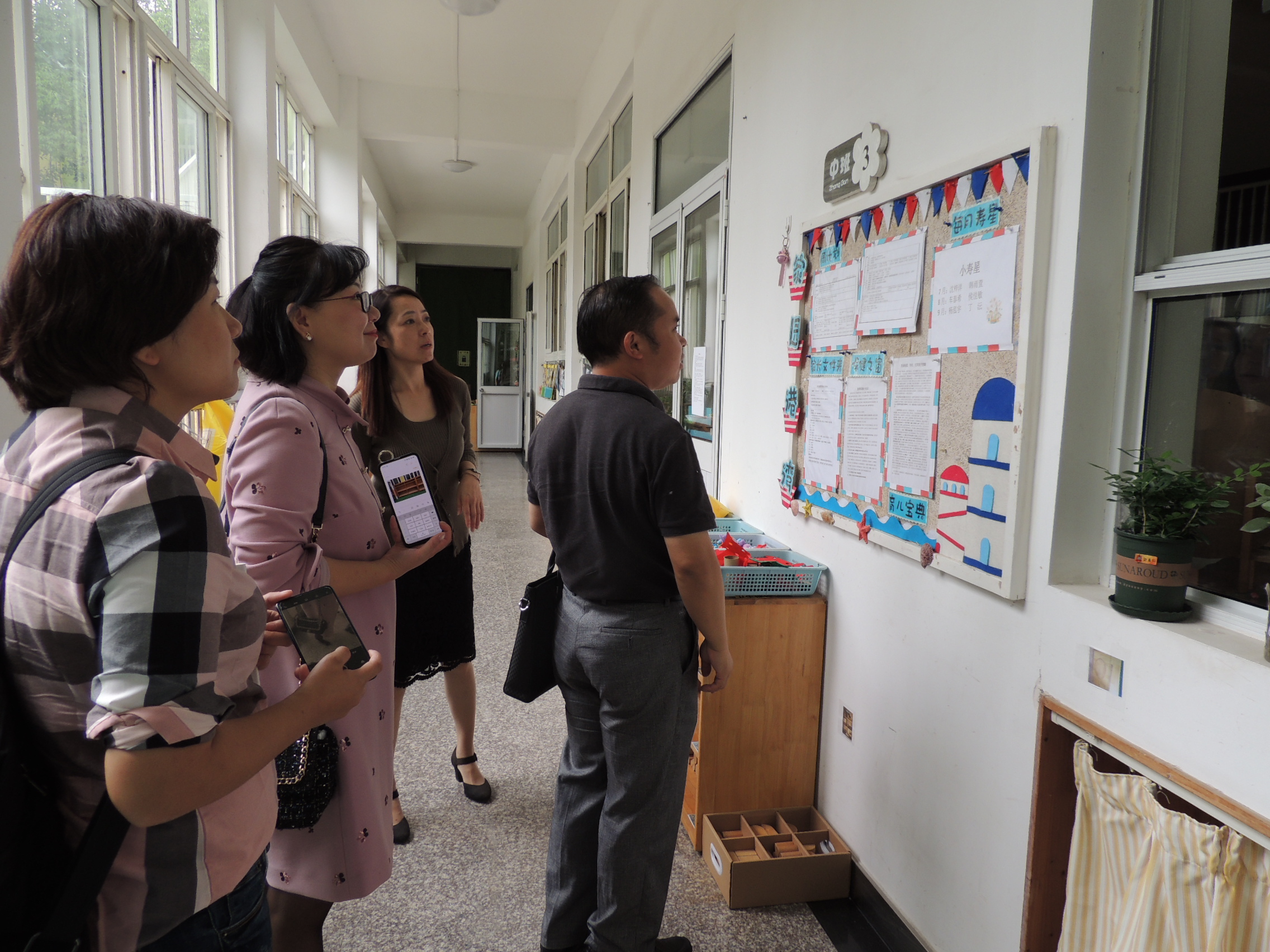在教育幼儿园,付蓉园长一行在杨洁园长、王赟副园长、俞芳博士的带领下,参观了幼儿园的户外游戏区、专用活动室等。杨洁园长就幼儿园的建园历史、师资队伍、课程建设等向付蓉园长一行进行了介绍,幼儿园室内外环境及园本课程给付蓉园长一行留下了深刻的印象。
